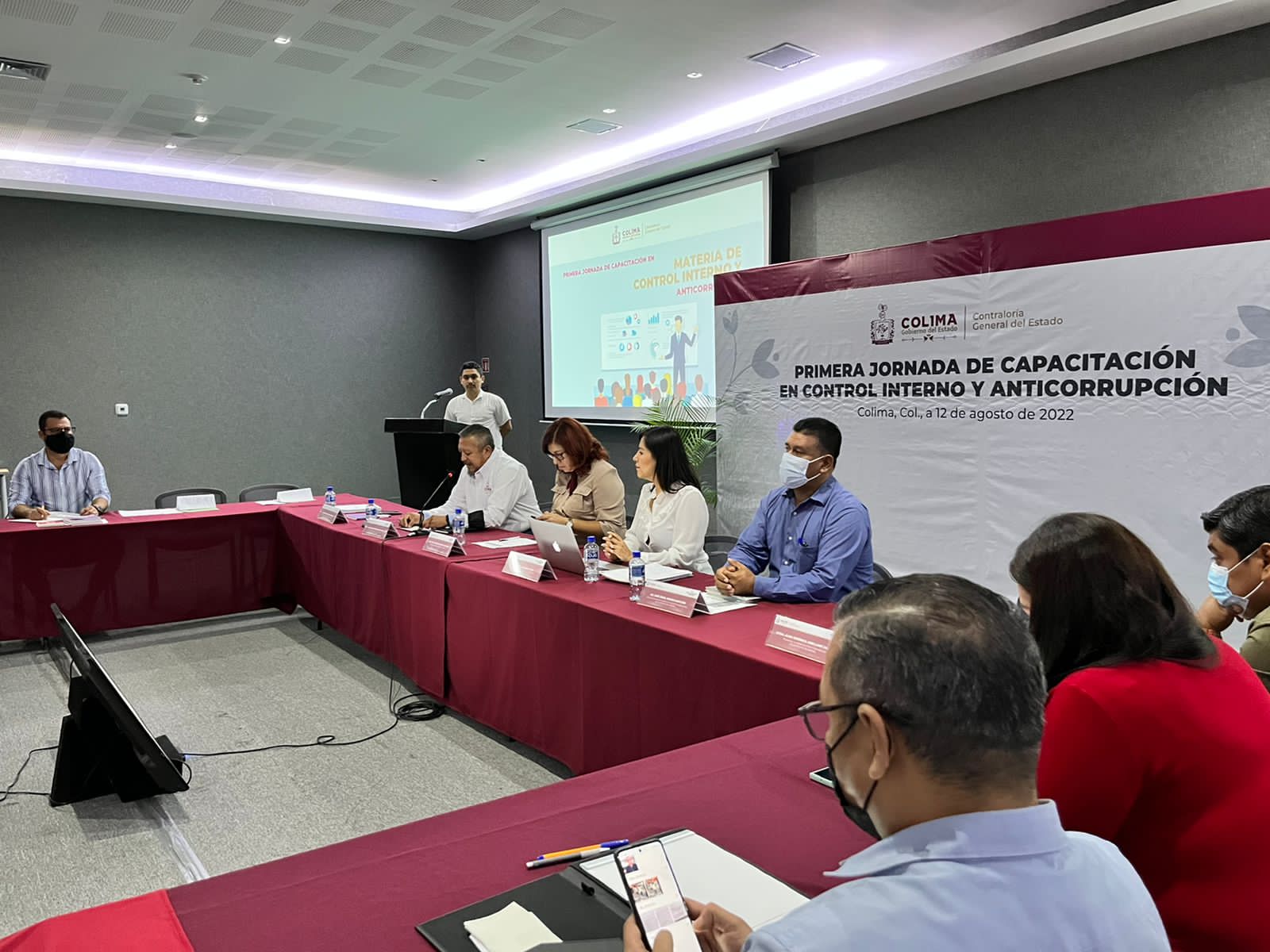 La Contraloría General del Estado de Colima llevó a cabo este viernes la Primera Jornada de Capacitación en Control Interno y Anticorrupción, que fue encabezada por la contralora Isela Guadalupe Uribe Alvarado, acompañada del director de Asuntos Jurídicos y de Responsabilidades de la Contraloría, José Ángel Morán; la titular de la Unidad de Ética y Prevención de Conflicto de Intereses, Verónica Arellano Salazar; la directora de Control Interno y Vigilancia, Perla Barreda Vidal y el director de Profesionalización de la Escuela de Buen Gobierno, Pedro Arcadio Blanco Cano.