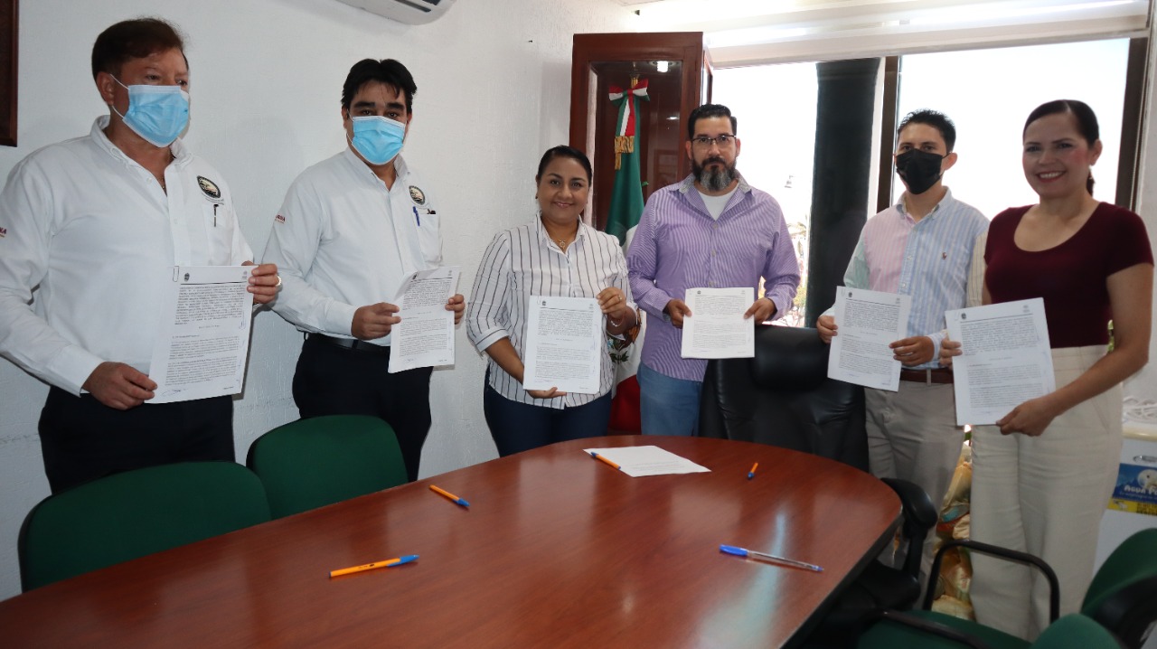 La presidenta Griselda Martínez junto con la secretaria Martha Zepeda, el síndico Cristian Bolaños y el secretario técnico del Ayuntamiento Juan Manuel Torres firmaron lo correspondiente, documentos que también fueron signados por el representante legal de la ASIPONA, Lenin Alejandro Valdez González.