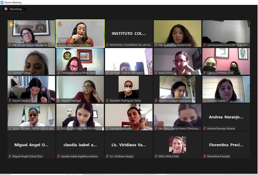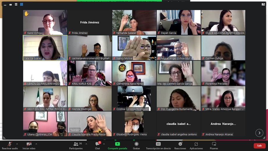 En la reunión en línea participaron las secretarias de Bienestar, Inclusión Social y Mujeres, Dulce Huerta Araiza y de Planeación, Finanzas y Administración, Fabiola Verduzco Aparicio; las presidentas municipales de Armería, Diana Zepeda Figueroa, de Cuauhtémoc, Gabriela Mejía Martínez y de Manzanillo, Griselda Martínez Martínez; las diputadas locales Fernanda Salazar Martínez, Isamar Ramírez Rodríguez, Andrea Naranjo Alcaraz, Sandra Ceballos Polanco y Evangelina Bustamante Morales; las legisladoras federales María del Carmen Zúñiga Cuevas y Gabriela Benavides Cobos, así como 13 de las 15 consejeras honorarias del ICM, integrantes de la sociedad civil.