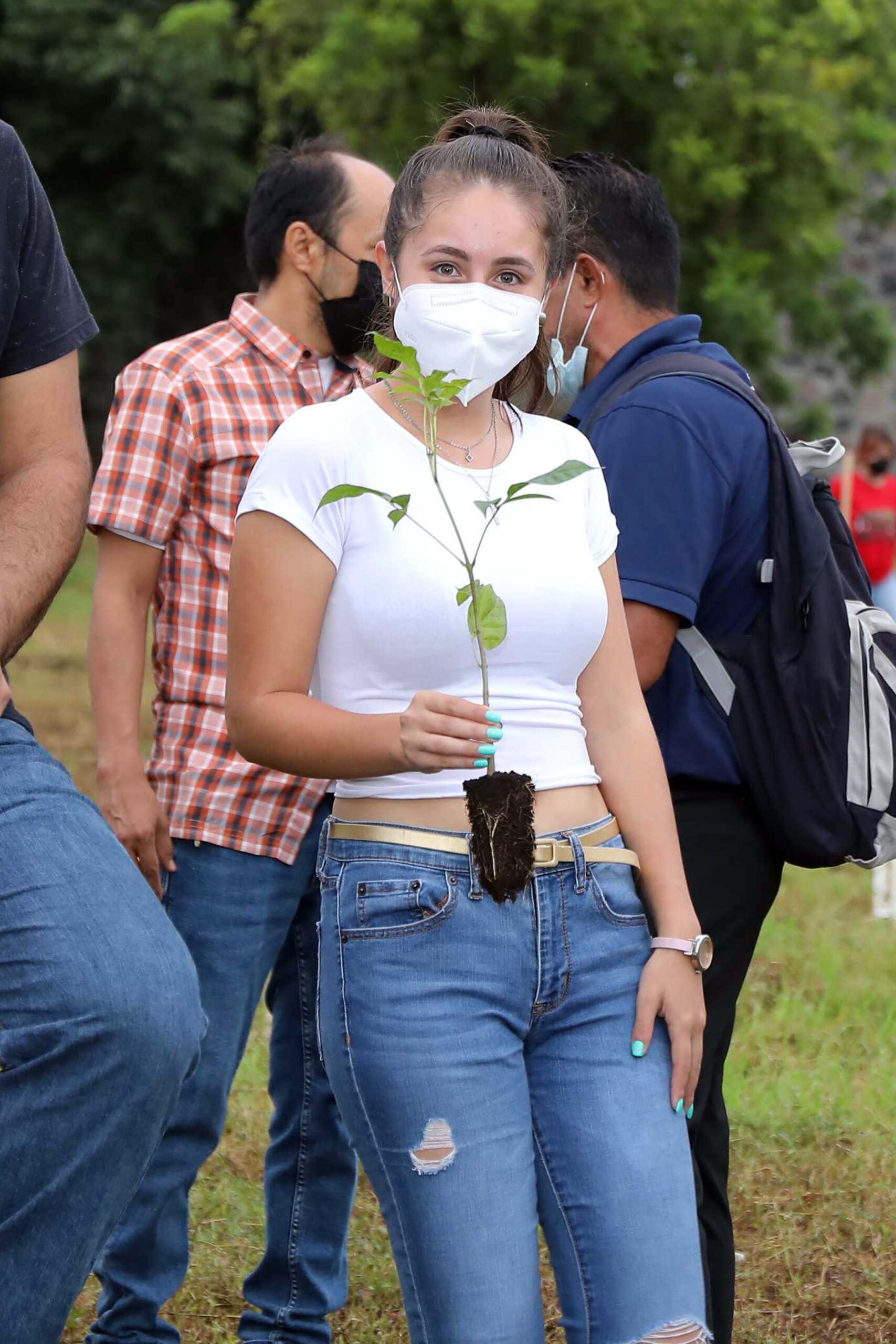 La joven Ana Carolina, alumna de la Facultad de Ingeniería Mecánica y Eléctrica, dijo que le gusta participar en este programa porque le gustan los árboles y en general la naturaleza; “vengo con mis amigos a plantar árboles, conozco cómo se llaman y además los vamos a cuidar. Aquí pasamos todo el rato y está bien sembrarlos, porque hace mucho calor”.