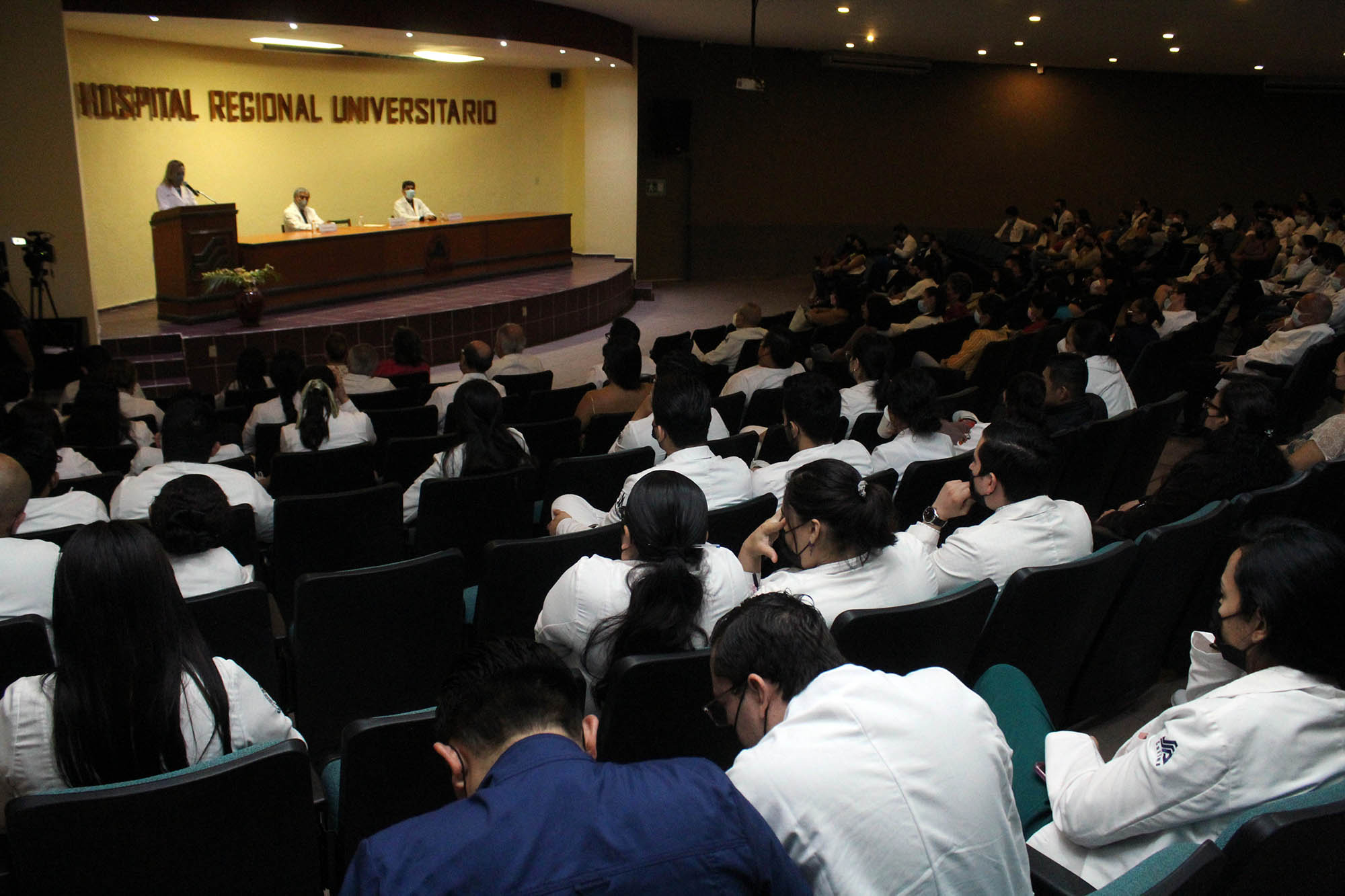 La titular de la Secretaría de Salud de Colima celebró que la capacitación continua se contemple en esta celebración del HRU y que se sigan generando conocimientos científicos para aportar a la atención de las y los pacientes, contexto en el que destacó el carácter formador de cada vez más especialistas que tiene el hospital.