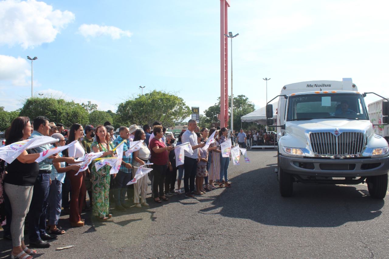 La Presidenta Tey Gutiérrez explicó que los 4 millones 946 mil pesos invertidos en los vehículos entregados este lunes, más los adquiridos a principios de año: tres compactadores, una camioneta de 3 toneladas de carga, una grúa con canastilla y una pipa, suman una inversión acumulada de 18 millones de pesos.