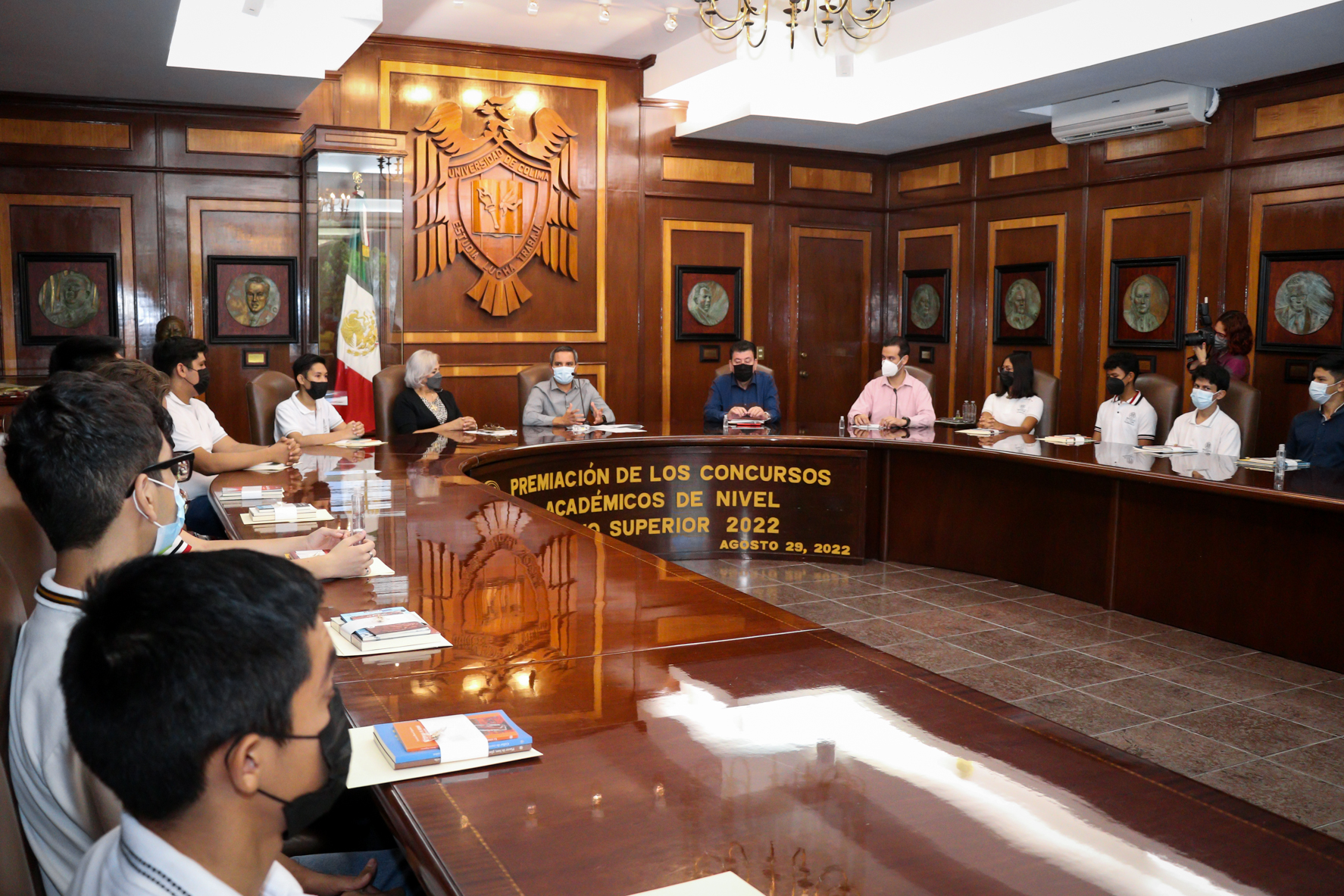 Este lunes, el rector de la Universidad de Colima, Christian Torres Ortiz Zermeño, entregó reconocimientos a 18 estudiantes que obtuvieron los tres primeros lugares en los Concursos Académicos del Nivel Medio Superior 2022, así como a los 12 profesores encargados de elaborar y evaluar los exámenes.