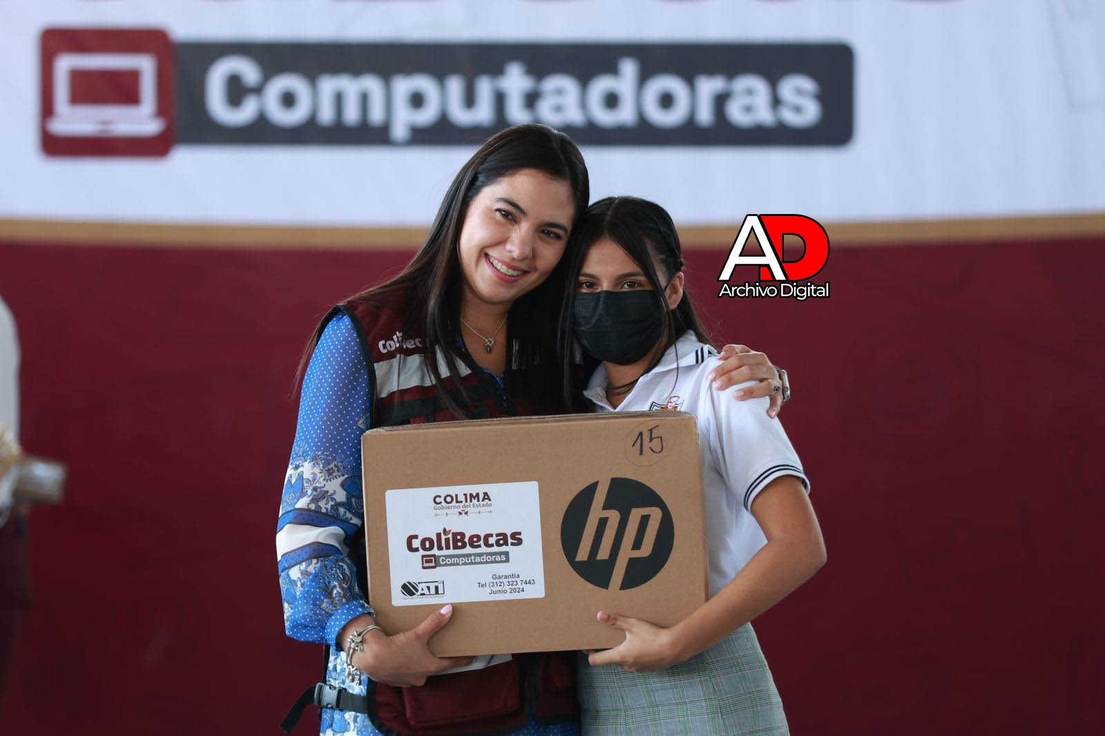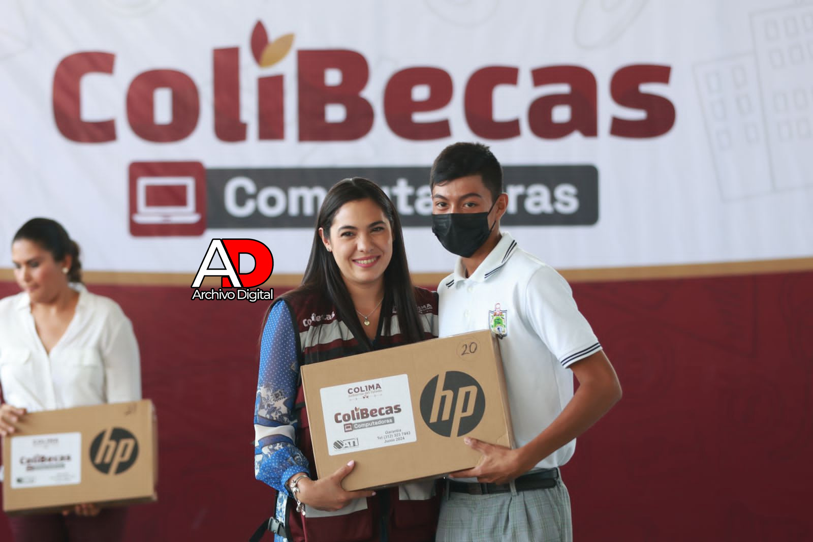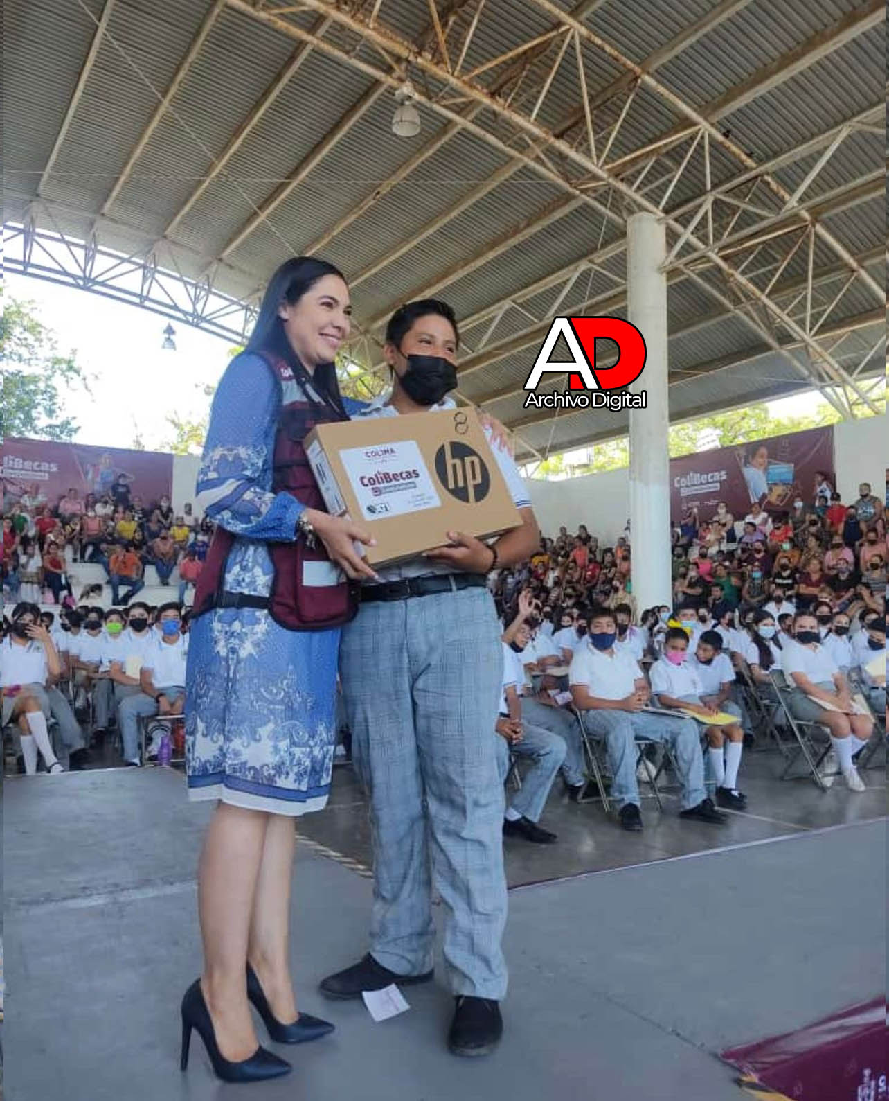 La gobernadora Indira Vizcaíno Silva entregó las primeras laptops gratuitas a estudiantes de la secundaria Antonio Barbosa Heldt, de 32 mil dentro del programa ColiBecas-Computadoras, que inició este viernes en el auditorio municipal de Armería y que es complemento de las fases anteriores: ColiBecas-Uniformes y ColiBecas-Mochilas y útiles, con que el Gobierno del Estado de Colima invierte más de 200 millones de pesos para apoyar a miles de familias de toda la entidad, que tienen hijos en escuelas públicas de preescolar, primaria y secundaria.