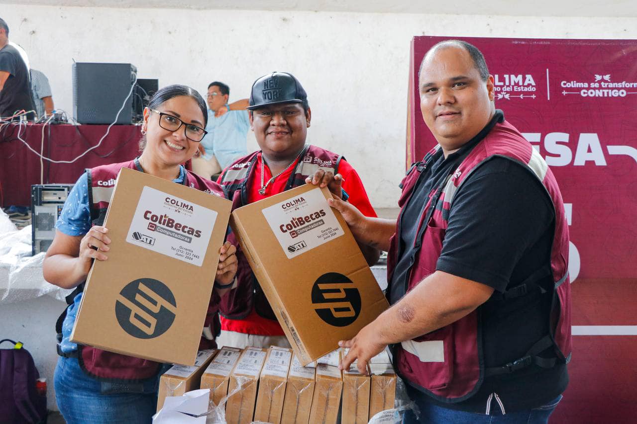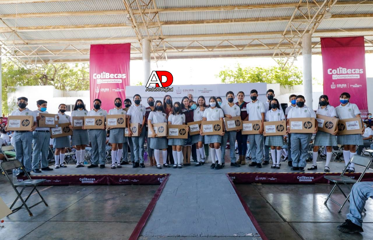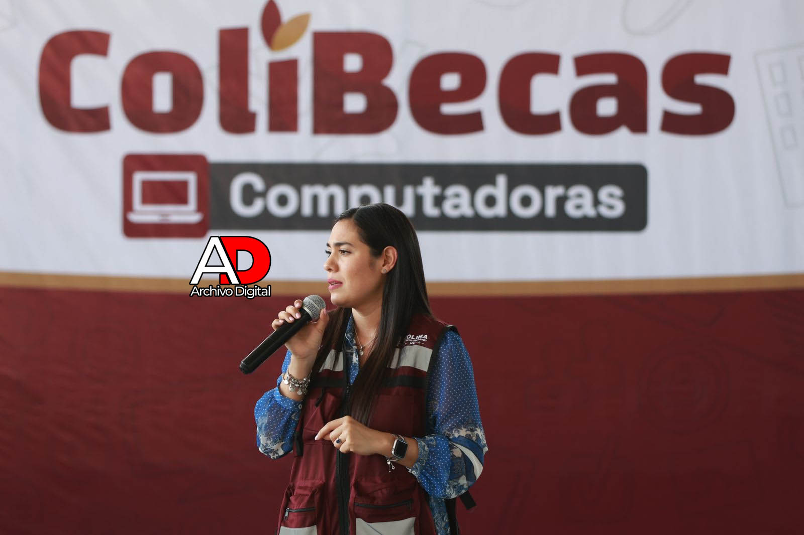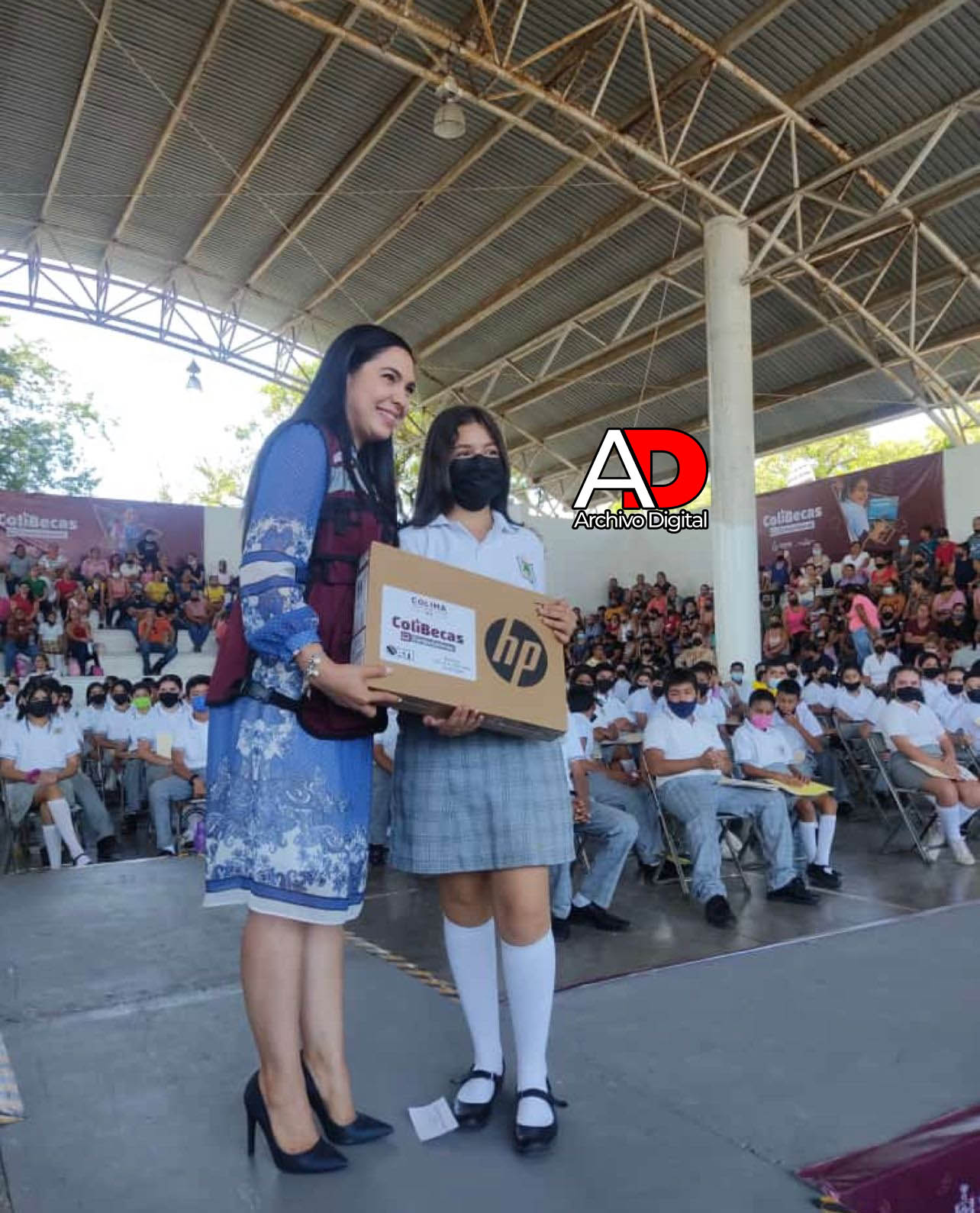 La gobernadora Indira Vizcaíno Silva entregó las primeras laptops gratuitas a estudiantes de la secundaria Antonio Barbosa Heldt, de 32 mil dentro del programa ColiBecas-Computadoras, que inició este viernes en el auditorio municipal de Armería y que es complemento de las fases anteriores: ColiBecas-Uniformes y ColiBecas-Mochilas y útiles, con que el Gobierno del Estado de Colima invierte más de 200 millones de pesos para apoyar a miles de familias de toda la entidad, que tienen hijos en escuelas públicas de preescolar, primaria y secundaria.