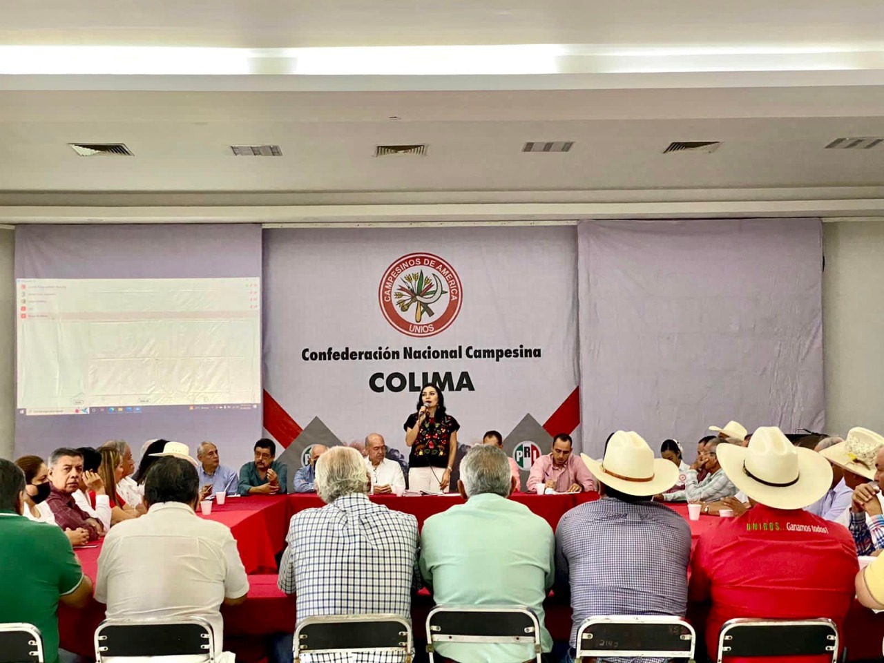 Delegada en funciones de Presidenta de la CNC estatal, Mtra. Mely Romero Celis; Secretario General, diputado Miguel Ángel Galindo Barragán; Gilberto Manzo Sánchez, presidente de la Confederación Nacional Agronómica Colima; Secretaria de Organización, Blanca Esthela Acevedo Gómez.