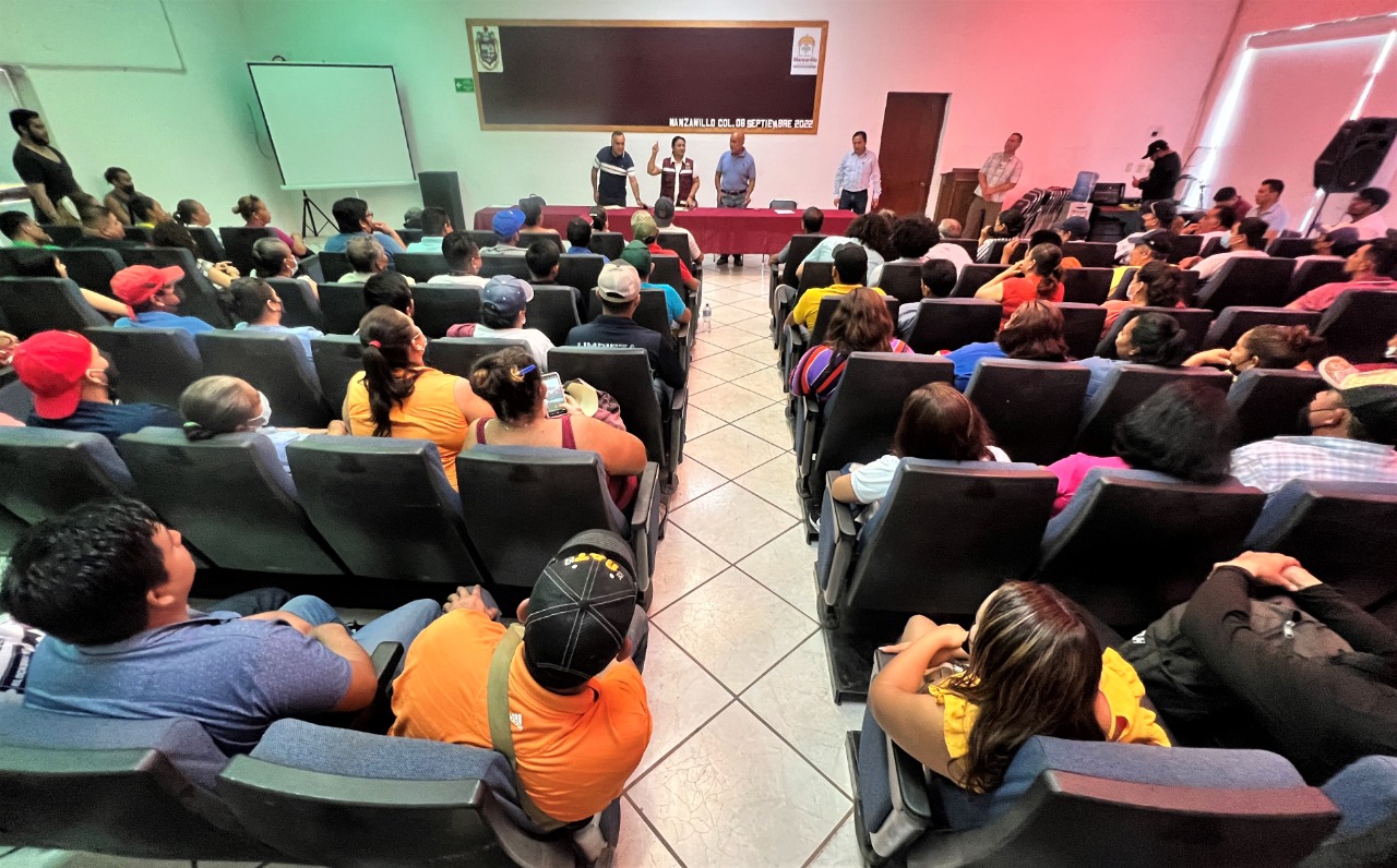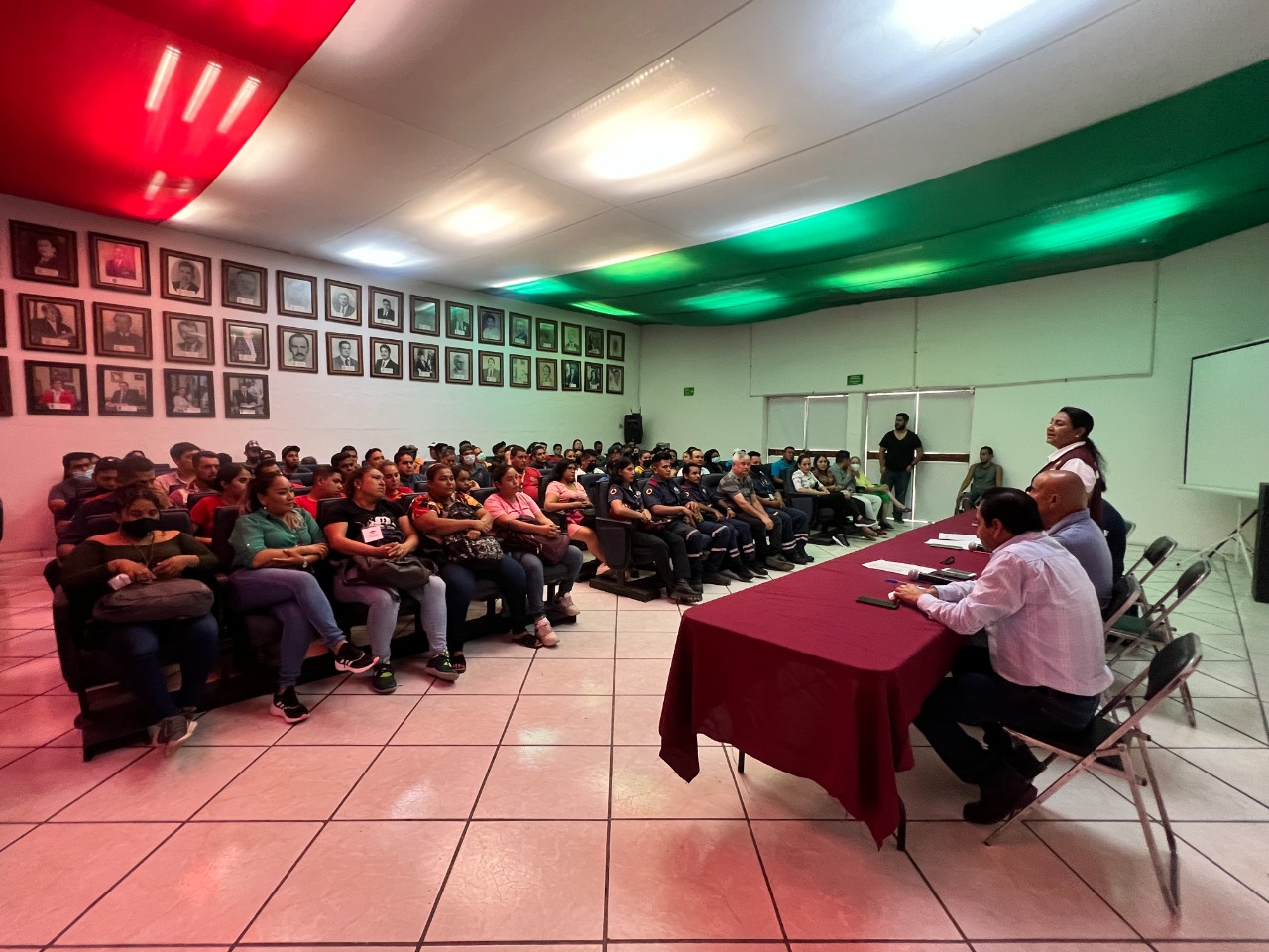 Acompañada por el Oficial Mayor, Andrés Peñaloza; el director general de Servicios Públicos, Gonzalo Rojas; y el Director de Recursos Humanos, Héctor Luna; la alcaldesa se reunió con los trabajadores para informarles la buena noticia sobre su incremento y pedirles que redoblen esfuerzos en beneficio de la población manzanillense.
