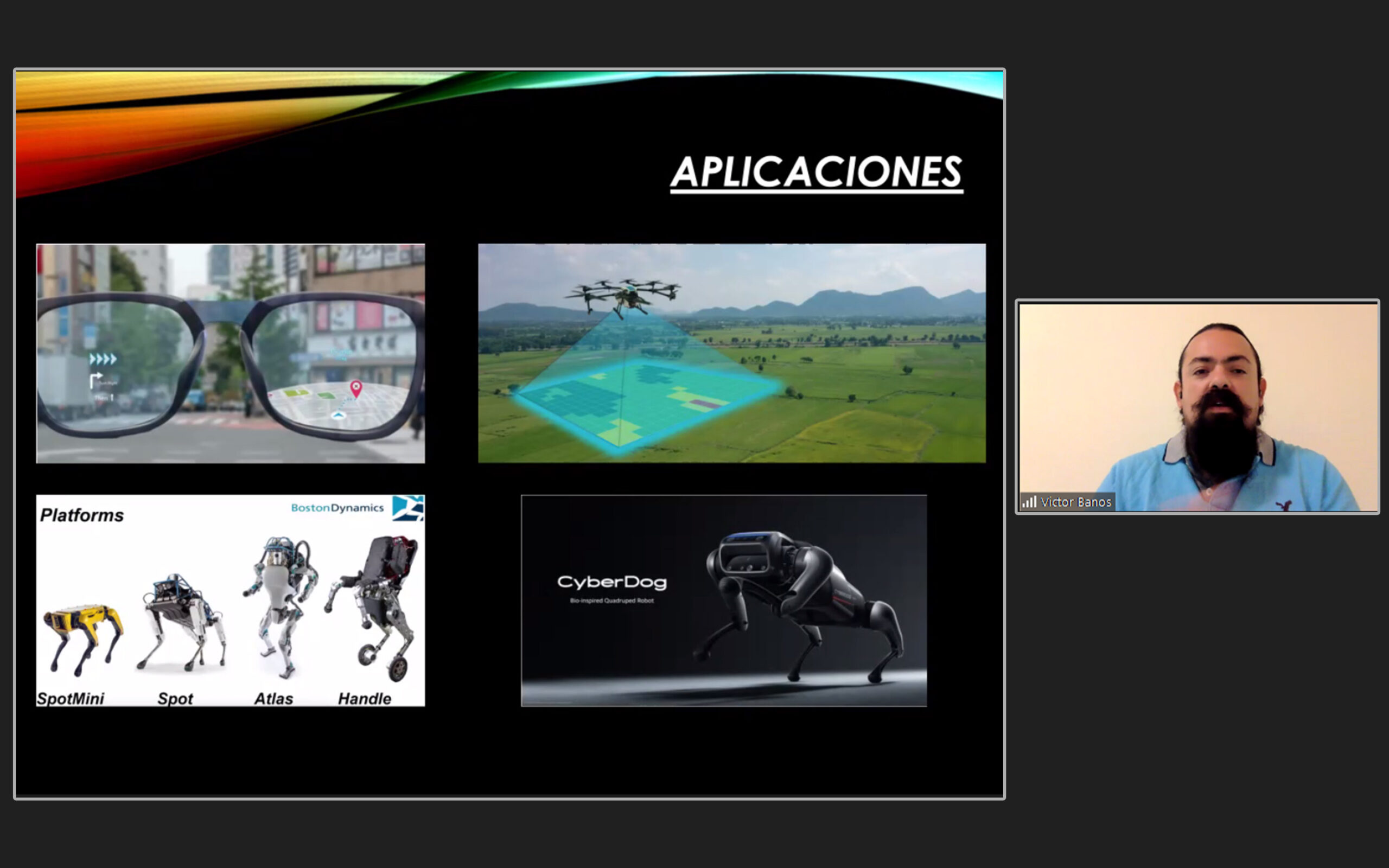 Víctor Baños expuso que en algunas aplicaciones de tecnología de comunicaciones inalámbricas en los sistemas ciberfísicos son el metaverso, los espacios virtuales que se generan en las redes sociales para simular espacios de trabajo o aulas de clases, así como la comunicación entre Hardware y Software para prestar los servicios en las tareas monótonas del día a día.
