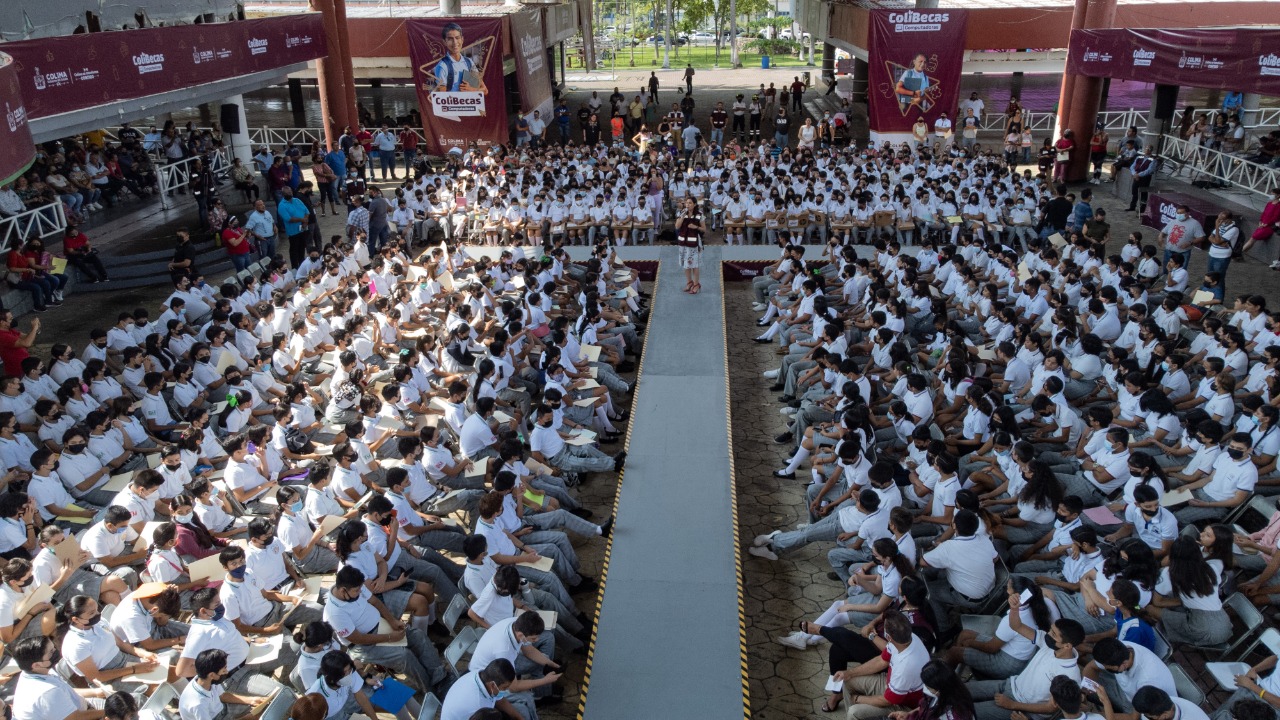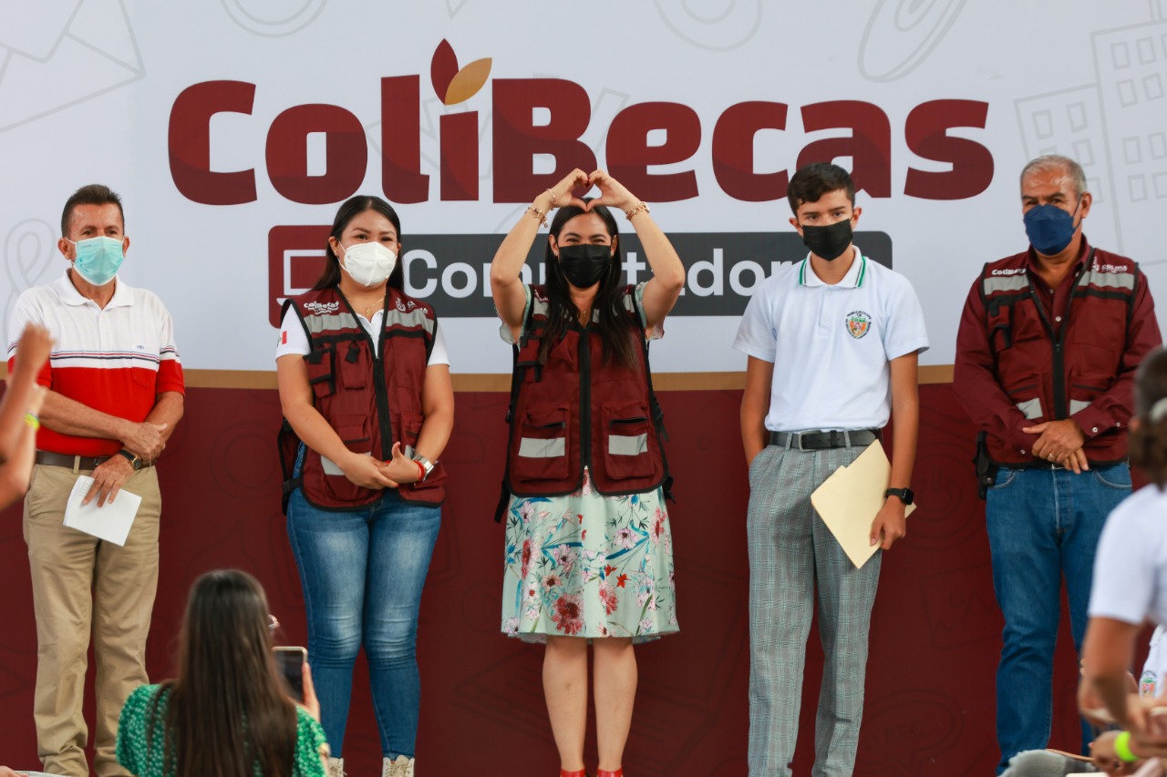 Vizcaíno Silva les dijo que les ha tocado ver que compañeras y compañeros dejaron la escuela por falta de oportunidades y recursos, porque no tienen el apoyo suficiente; además de que hay niñas y niños en comunidades rurales que no pueden terminar primaria o secundaria; “por eso creamos en este gobierno una serie de programas denominados ColiBecas-Uniformes, ColiBecas-Mochilas y útiles, y ColiBecas-Computadoras, para contribuir con todo lo básico para que puedan continuar sus estudios y apoyar la economía familiar”.