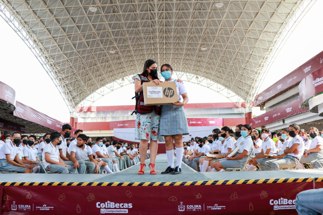 Recordó que ColiBecas-Computadoras es para todas y todos los estudiantes de secundarias públicas del estado; “aquí en este evento son casi 900 jóvenes que van a recibir su laptop; sólo en el municipio de Colima son más de 6 mil jóvenes y en todo el estado más de 30 mil jóvenes, que van a estar recibiendo su computadora”.