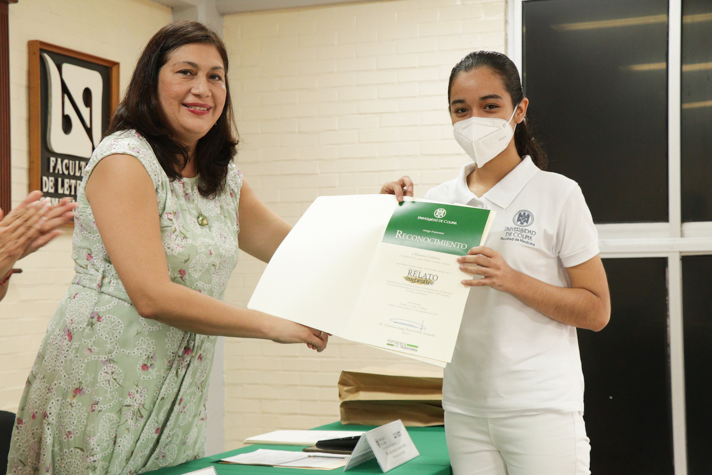 En la premiación, se entregó una dotación de libros a la ganadora del primer lugar, Brianna Gutiérrez, alumna de la Licenciatura de Médico Cirujano y Partero de la Facultad de Medicina y también al segundo lugar, Luis Enrique Vicente Hernández, egresado de la Licenciatura en Letras Hispanoamericanas.