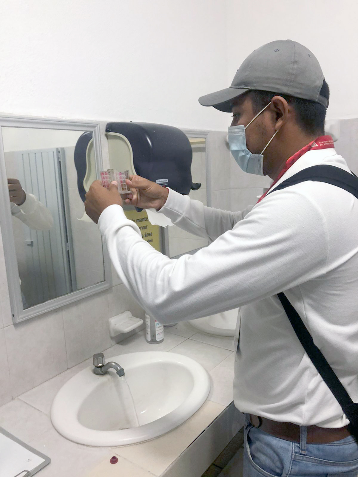Asimismo, se efectuaron visitas de evaluación a doce tiendas de autoservicio, seis restaurantes, dos tiendas departamentales y cuatro farmacias, para constatar que se encontraban en condiciones salubres, y se han repartido cinco kilos de hipoclorito de calcio a los pobladores afectados para la desinfección del agua y se entregaron 125 frascos de plata coloidal para la desinfección de frutas y verduras.