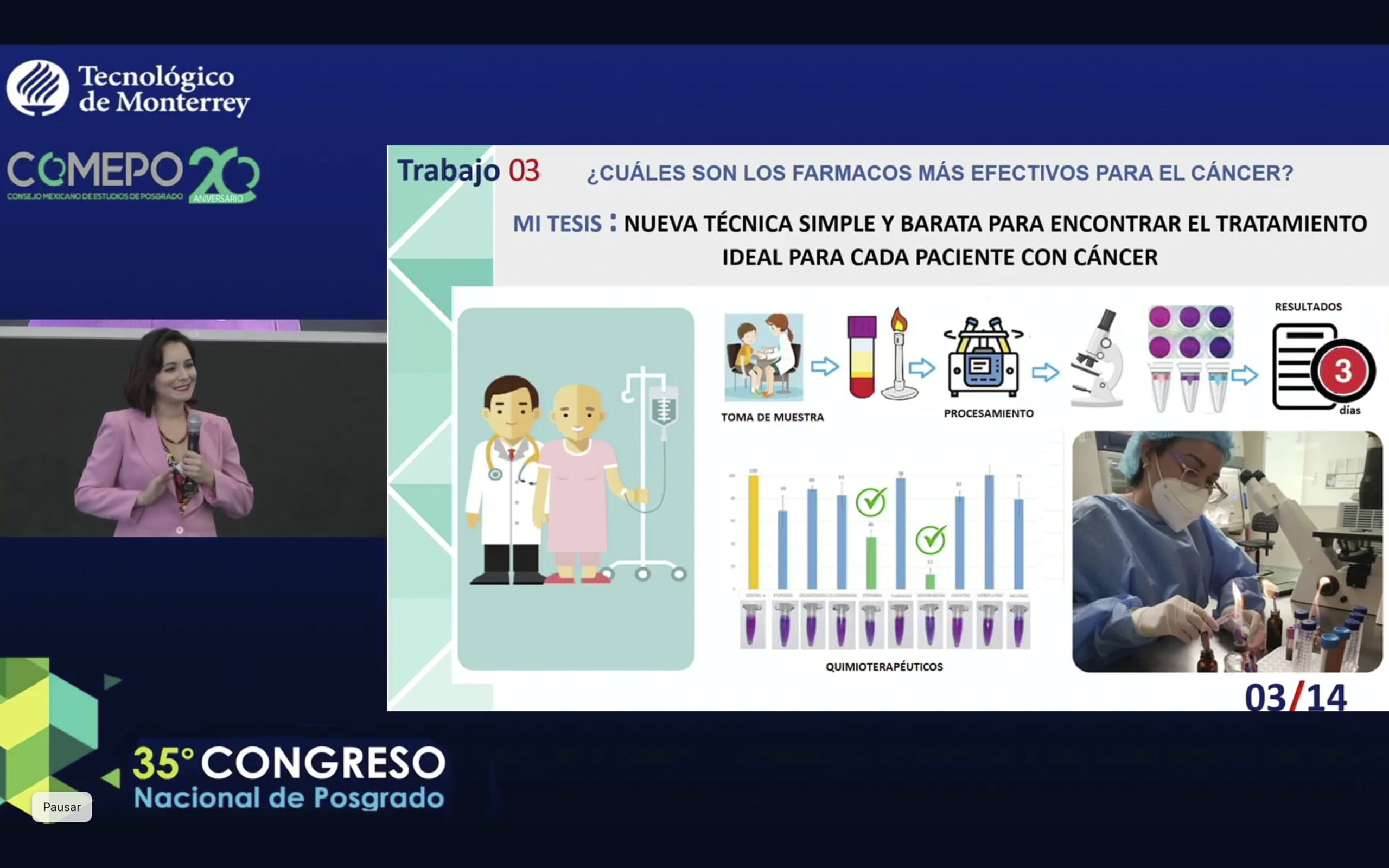 *Presentó su proyecto de tesis “Nueva técnica simple y barata para encontrar el tratamiento ideal para cada paciente con cáncer”.
