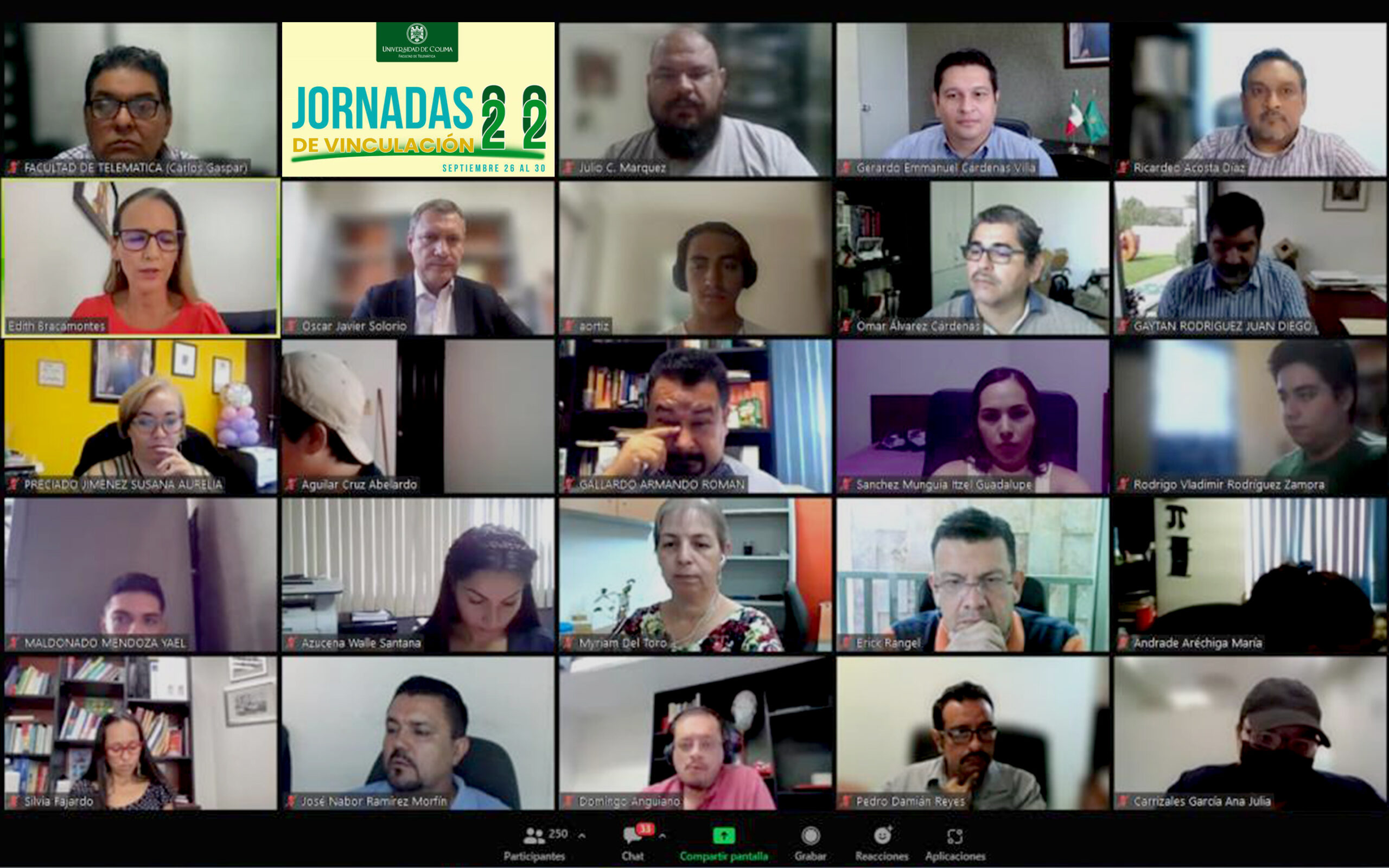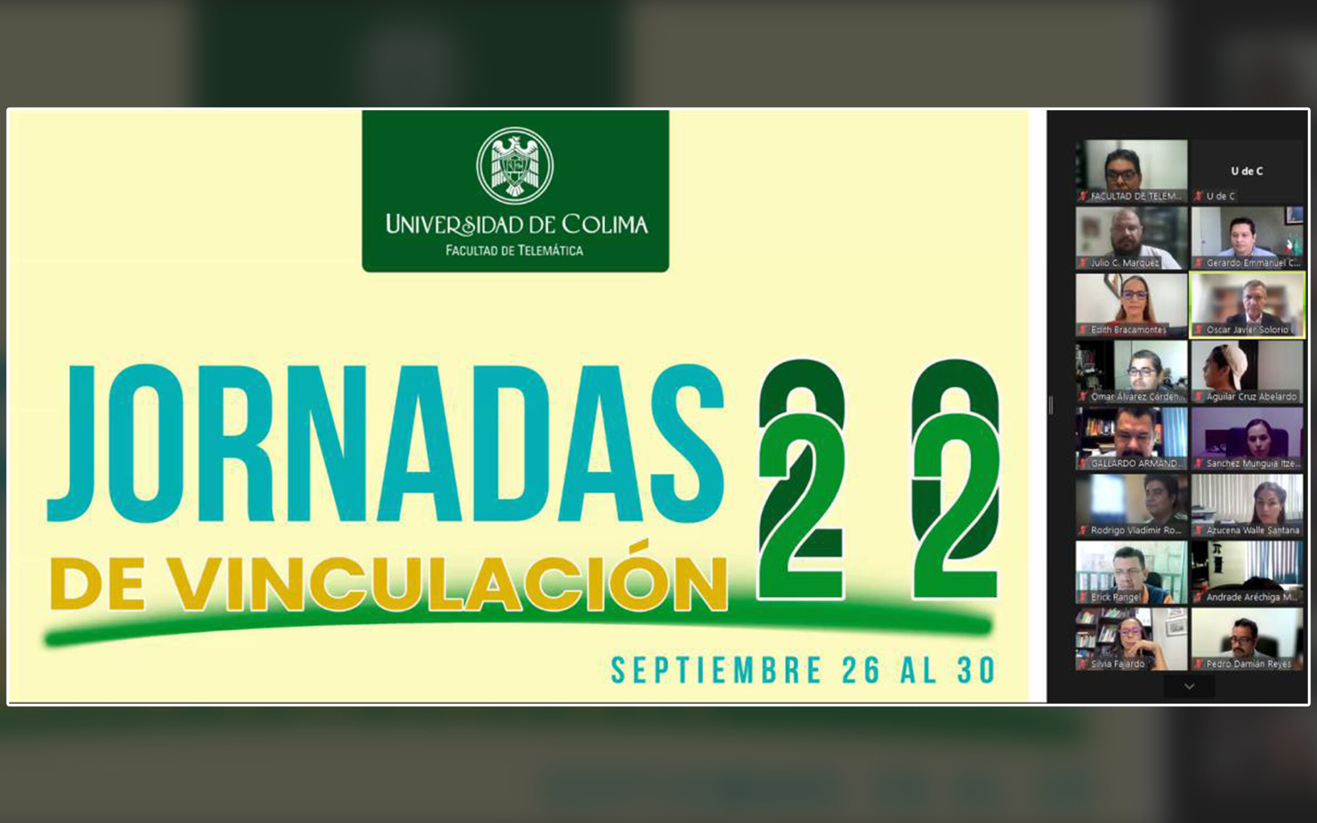 La mañana de este lunes iniciaron las actividades virtuales de las XXII Jornadas de Vinculación de la Facultad de Telemática, que se realizarán hasta el viernes 30 de septiembre con la participación de grandes empresas reconocidas a nivel nacional e internacional en el área.