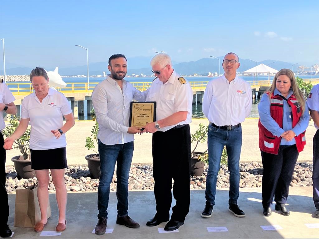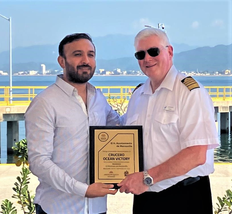 Este martes 11 de octubre de 2022, el Ayuntamiento de Manzanillo y demás autoridades, dieron la bienvenida al crucero Ocean Victory, con quien se hizo un intercambio de placas a través de un evento protocolario.