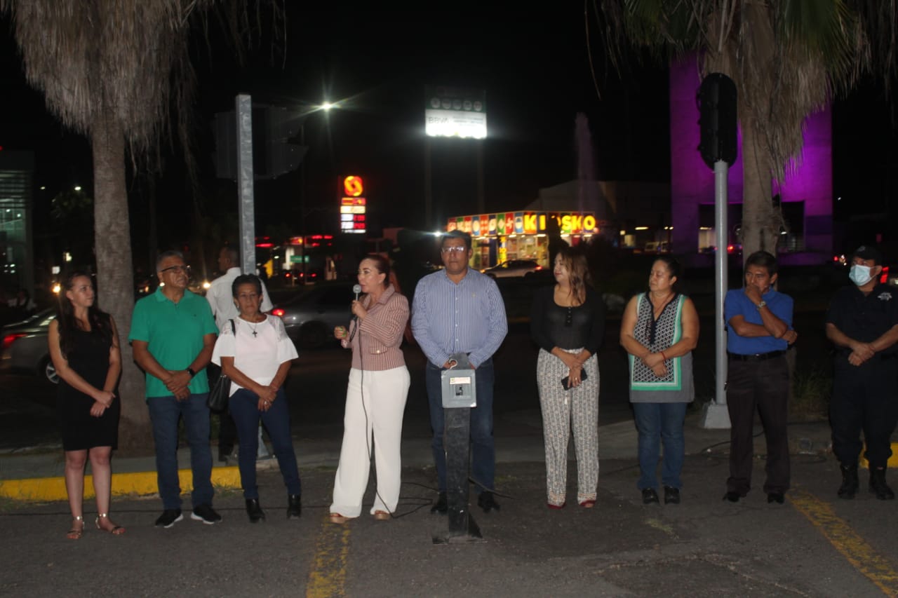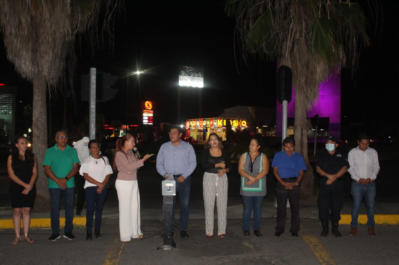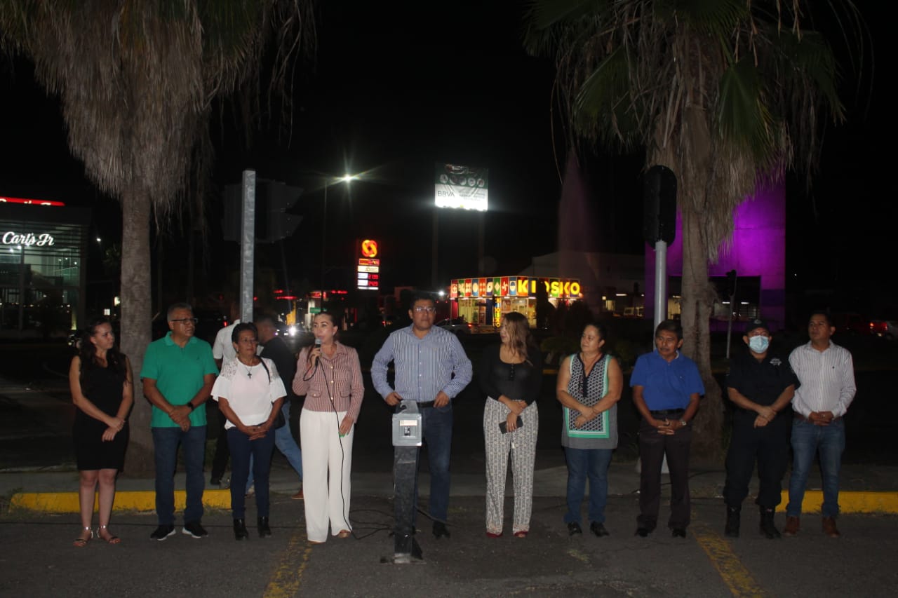 Acompañada por presidentes y presidentas de Comités de Barrio, Regidores, Regidoras y funcionarias y funcionarios municipales, la Alcaldesa anunció que cada mes serán cambiados los semáforos de al menos uno de los 33 cruceros que cuentan con esas luces para controlar el tráfico vial, pues algunos están instalados desde hace 30 años.