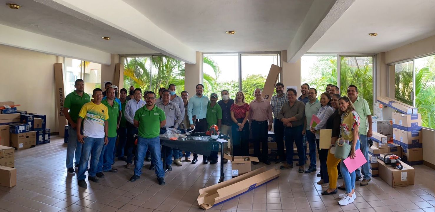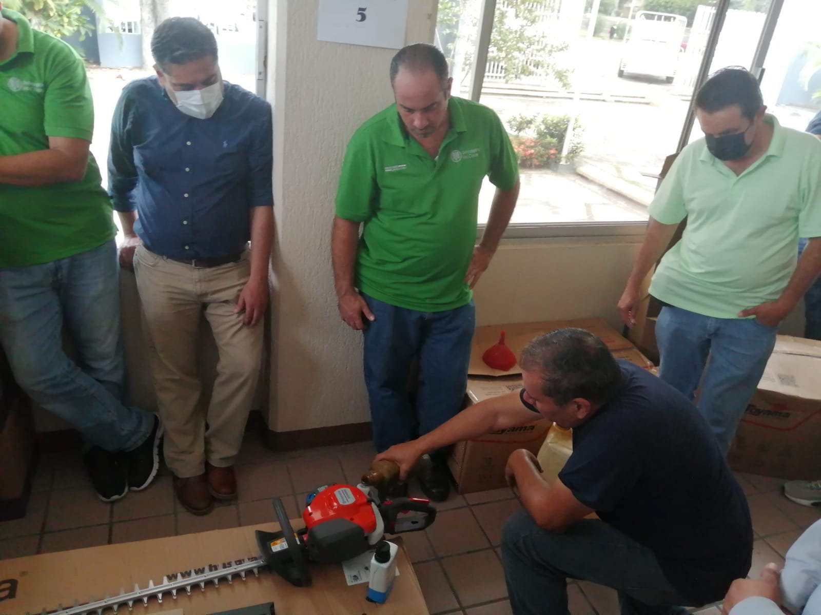 El nuevo equipo está conformado por desbrozadoras, motosierras, carros podadores, pinzas y tijeras especiales para la poda y tractores, entre otros; “estamos hablando de una inversión de 1.4 millones de pesos, con lo que cubrimos y abastecemos la renovación de equipo para toda la institución”.