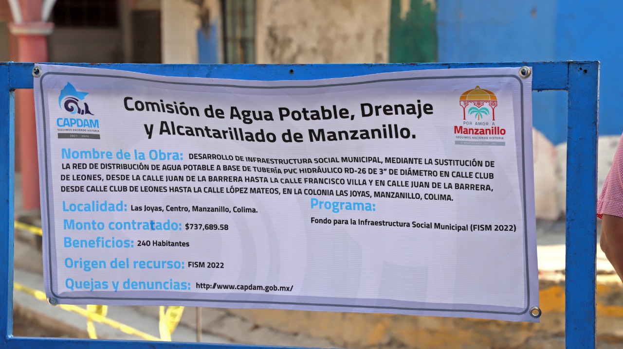 Con una inversión superior a los 737 mil pesos, la presidenta de Manzanillo dio inicio a los trabajos con los que se sustituirá la red de distribución de agua potable en la colonia Las Joyas; obra que beneficiará de manera directa a 240 habitantes de esa zona.