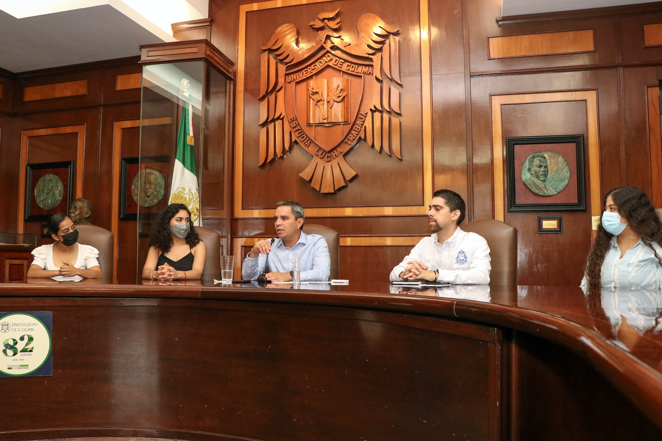 Presidentas y presidentes de las sociedad de alumnos de los 37 bachilleratos y las 30 facultades de la Universidad de Colima, encabezados por Camilo Alejando García Morales, presidente de la Federación de Estudiantes Colimenses (FEC), se reunieron con el rector Christian Jorge Torres Ortiz Zermeño en la sala de juntas de rectoría, para sostener un diálogo en el que intercambiaron ideas y plantearon nuevos proyectos y algunas necesidades.