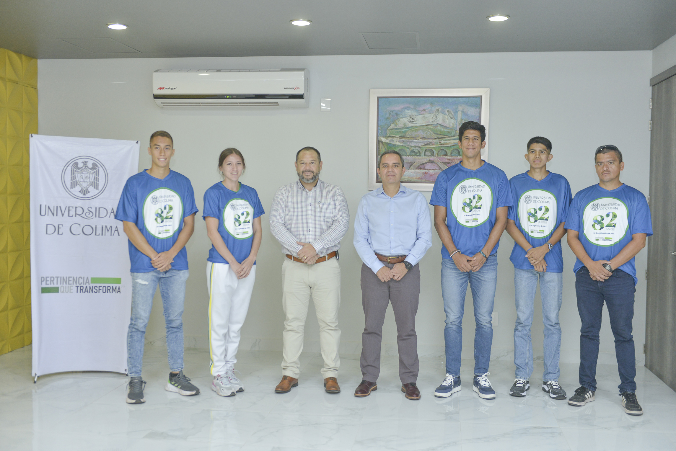 El rector de la Universidad de Colima, Christian Jorge Torres Ortiz Zermeño recibió, en la sala de protocolo del edificio de rectoría, la visita de la medallista y los medallistas universitarios que participarán en el Panamericano Universitario en Mérida, Yucatán, que se llevará a cabo del 17 al 22 de octubre de 2022.