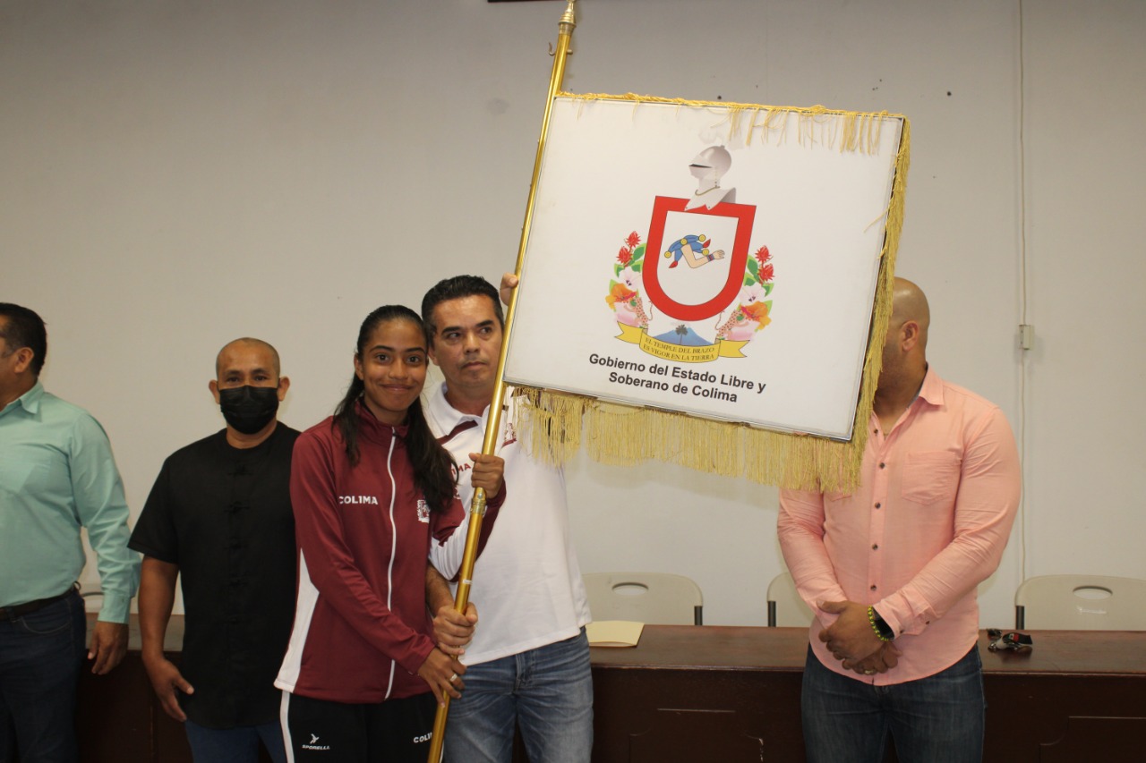 Ante las y los deportistas, el titular del Incode abanderó a la futbolista Haily Lithuania García Camacho, con el estandarte del Gobierno del Estado de Colima; a Juan Carlos Carrillo Cosío, de artes marciales, con el estandarte de la Secretaría de Educación y Cultura; a la futbolista Diana Guadalupe Cárdenas Gutiérrez con el estandarte de la Conade, y a Luis Castellanos Morfín, de artes marciales, con el estandarte del propio instituto.