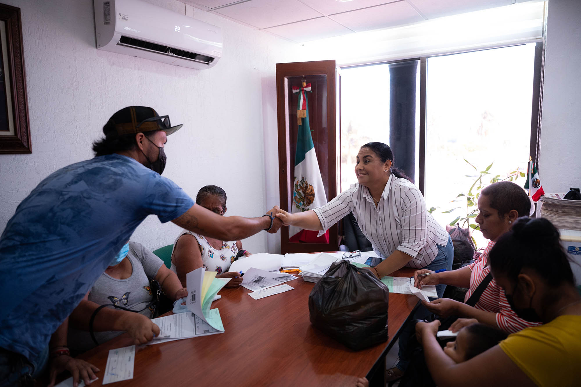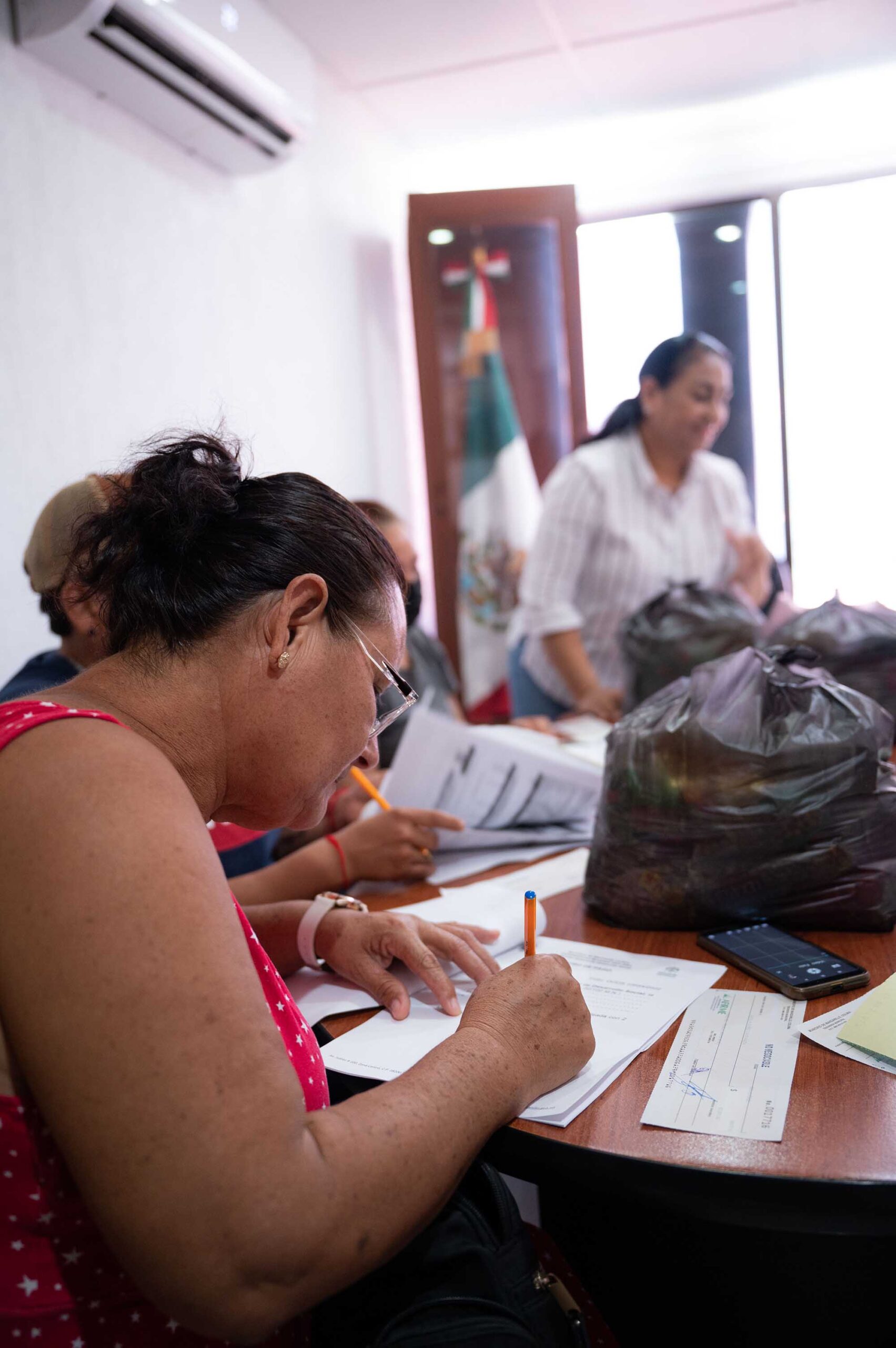 Griselda Martínez recibió a mujeres y hombres, jóvenes y adultos en la sala de juntas de la presidencia municipal en donde las y los beneficiarios complementaron la documentación correspondiente para poder recibir el vale bancario correspondiente.