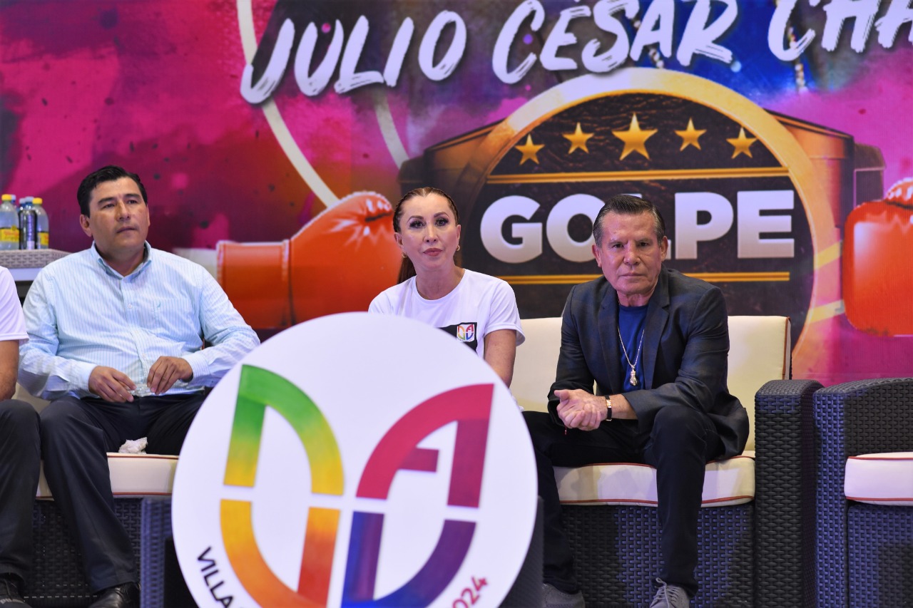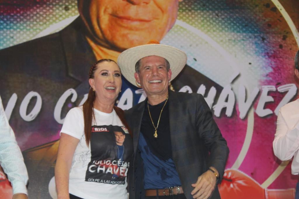 Villa de Álvarez, Col. A 27 de octubre de 2022. – Durante la charla “Golpe a las adicciones” que ofreció Julio César Chávez, “El gran campeón Mexicano” dijo llevarse una impresión increíble de la Alcaldesa Tey Gutiérrez, por el gran compromiso que tiene por Villa de Álvarez.