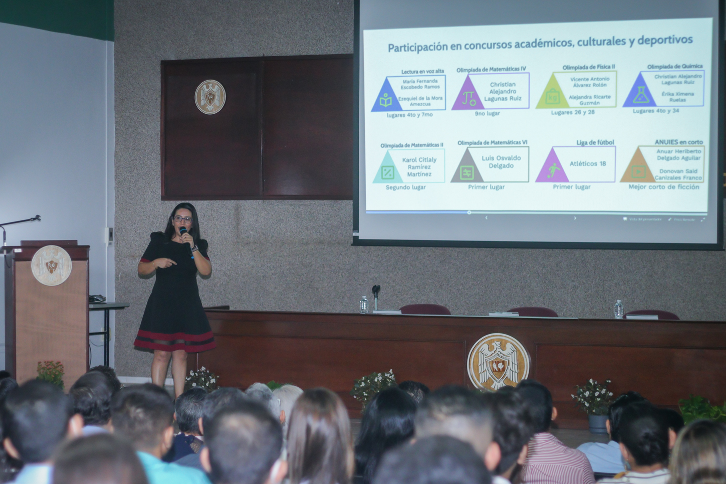 Por otro lado, reconoció que los estudiantes estuvieron activos en concursos de Matemáticas VI y II, en los que obtuvieron el primero y segundo lugar, respectivamente. También lograron el primer lugar en la liga de futbol del Nivel Medio Superior de la UdeC y de manera reciente el premio al mejor cortometraje en la categoría de Ficción en el concurso ANUIES en corto organizado en el país por la ANUIES.