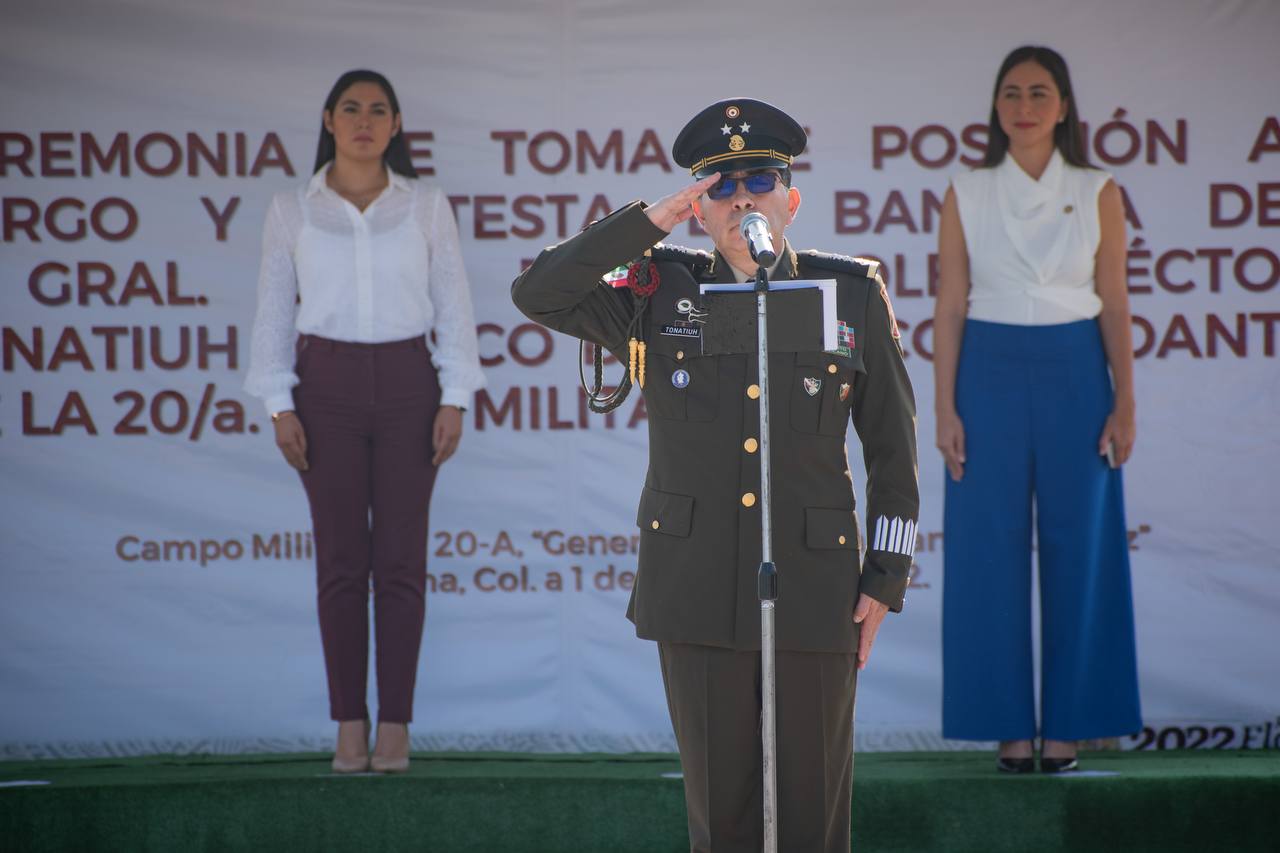 La gobernadora del estado de Colima, Indira Vizcaíno Silva, presenció el cambio de mando de General de Brigada de Estado Mayor de la Vigésima Zona Militar, que asumió este 1 de noviembre Adolfo Héctor Tonatiuh Velazco Bernal, en sustitución del General Hernán Cortés Hernández. La mandataria participó en la ceremonia de toma de posesión y protesta de Bandera este martes en la explanada del complejo militar.