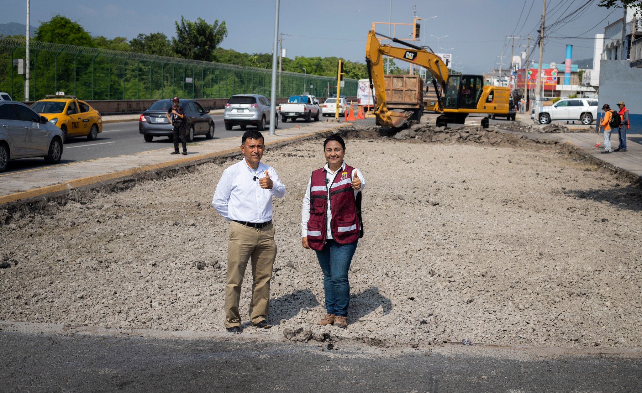 Junto con el director de Obras Públicas, Alam Vargas, Griselda Martínez reconoció el esfuerzo de la fuerza de trabajo para la construcción de las obras viales que se desarrollan, “ésta en particular se estima que pueda concluir en máximo 7 días, aunque podría ser antes”.
