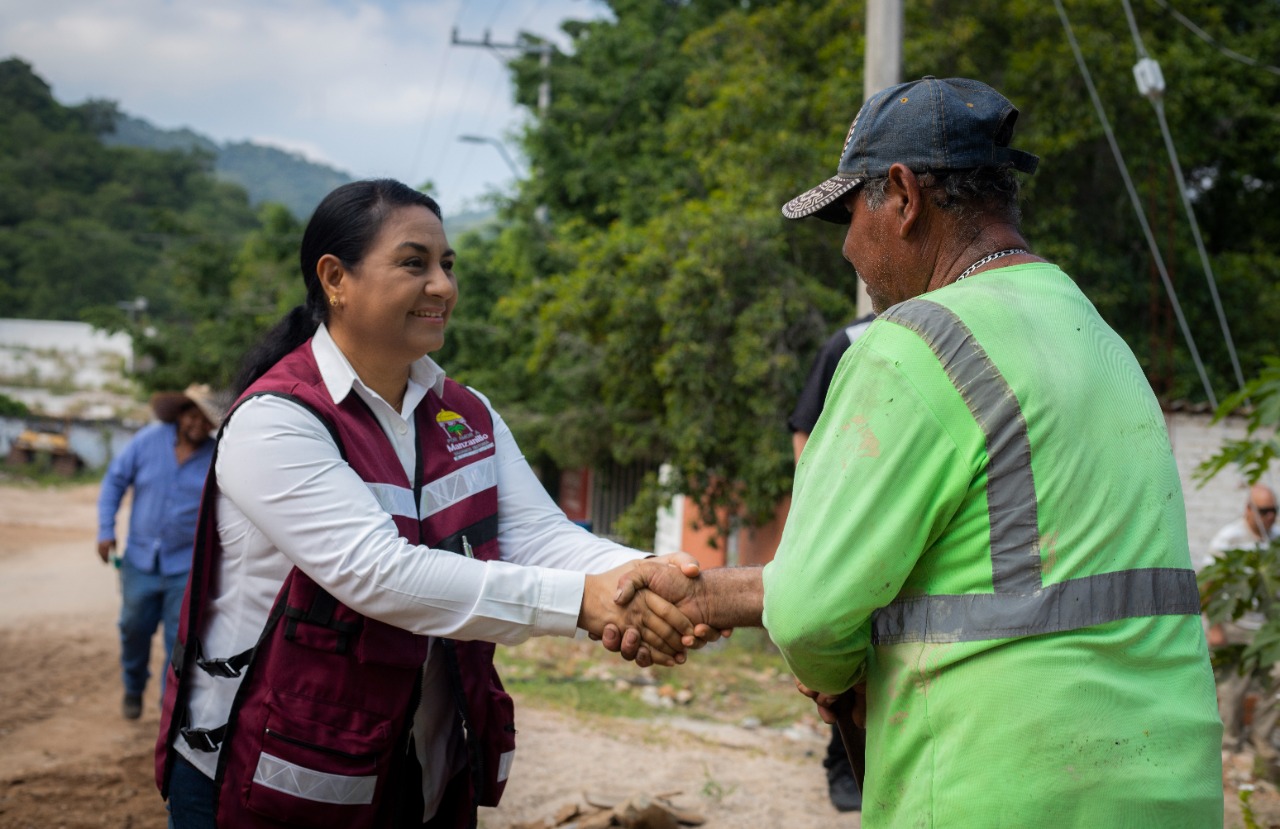 El comisario municipal, Carlos Vázquez Uribe, agradeció a la presidenta Griselda Martínez la renovación con concreto hidráulico el ingreso a su comunidad, “aquí teníamos que juntarnos todos con palas o rentar una retroexcavadora cada que llovía para poder pasar, pero ahora la gente está muy contenta”.
