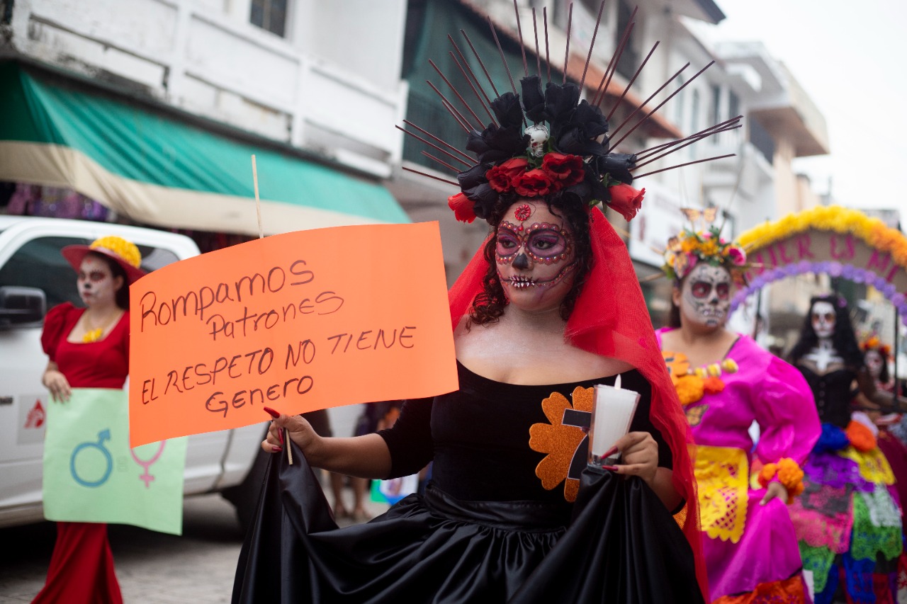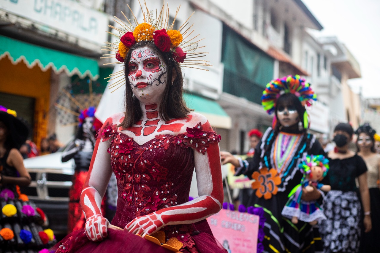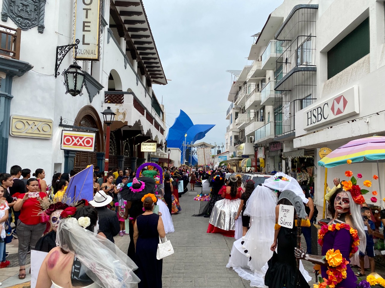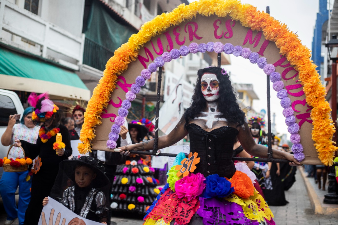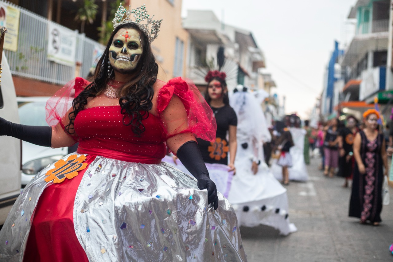 En su solemne recorrido, las bellas catrinas, portaban pancartas con mensajes de sororidad e igualdad, llamados a la prevención de las violencias de género. Ellas en un lento andar llegaron a la Plaza del Pez Vela donde fueron evaluadas por el jurado calificador.