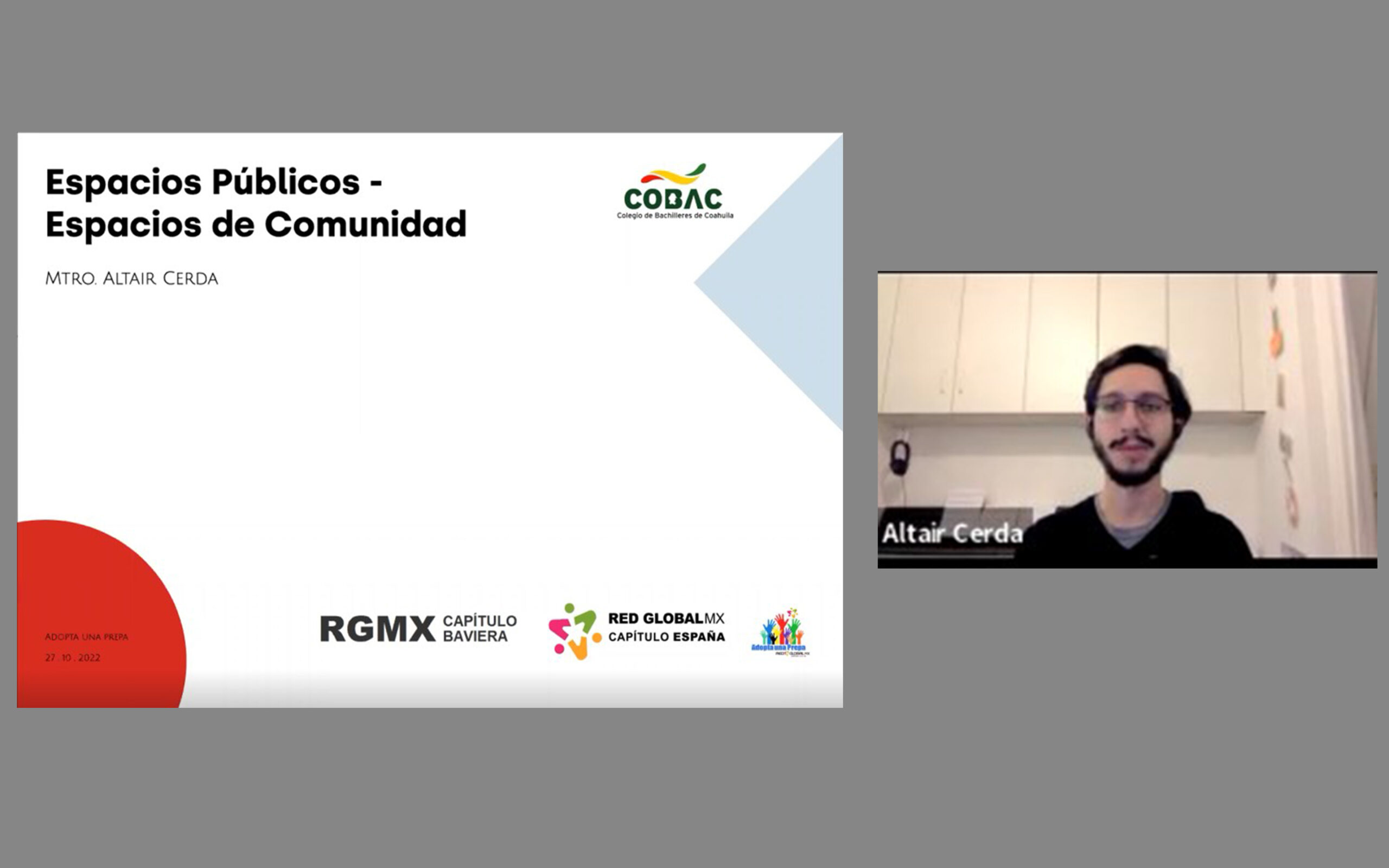 *Como parte del programa Adopta una Prepa, de la Red Global MX, Capítulo España y la UdeC, Altair Cerda dictó la conferencia virtual “Espacios públicos-Espacios para la comunidad”.