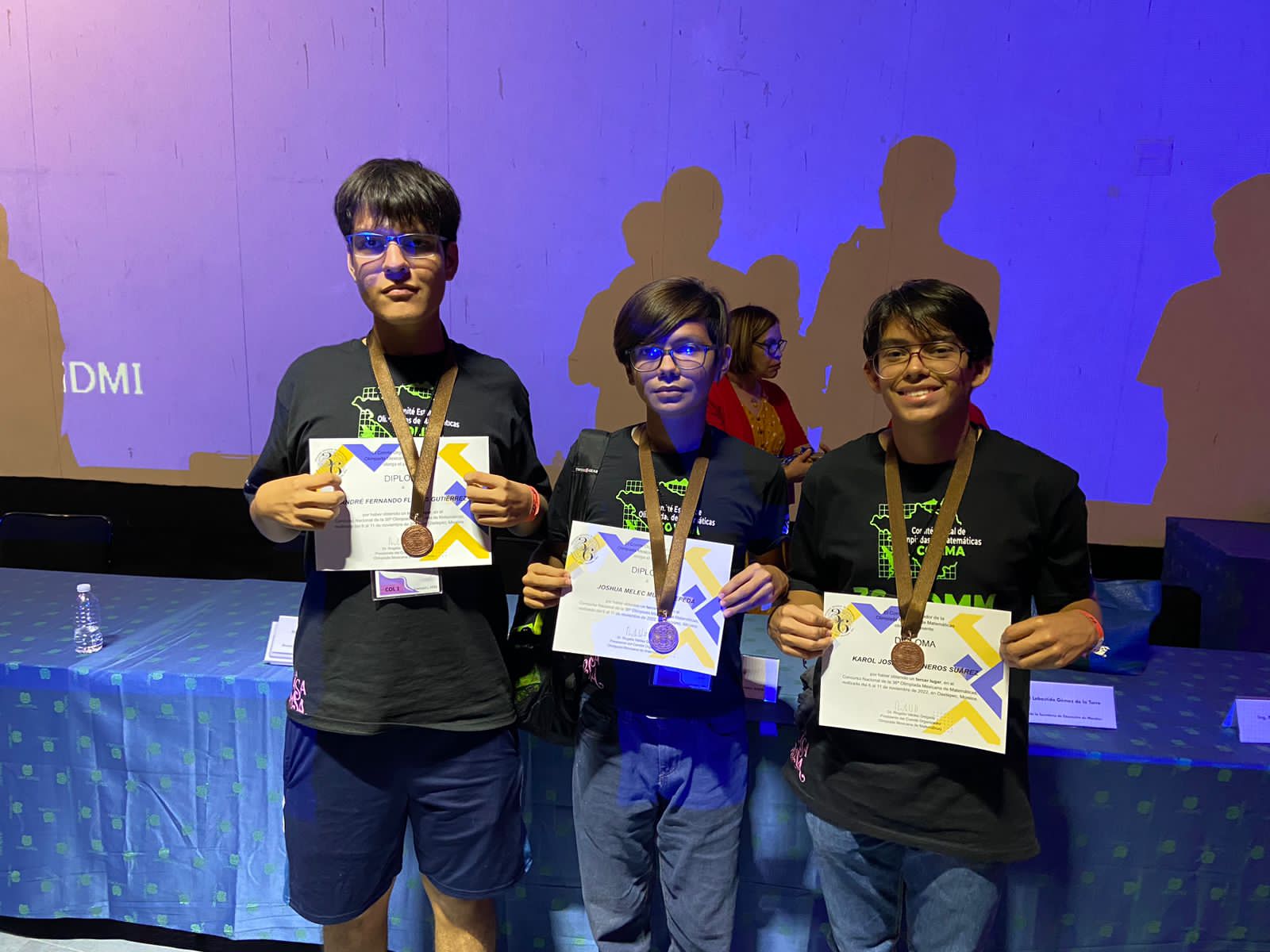 Josafat Cisneros Suárez, del Bachillerato 33; Fernando Flores Gutiérrez y Joshua Muñoz Zepeda, del Bachillerato Uno de la Universidad de Colima, obtuvieron medalla de bronce en la 36 Olimpiada Mexicana de Matemáticas que se realizó en Oaxtepec, Morelos, del 6 al 11 de noviembre de este 2022.