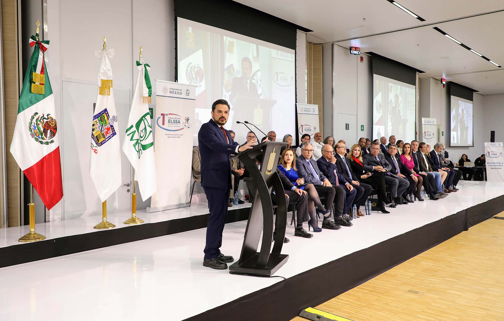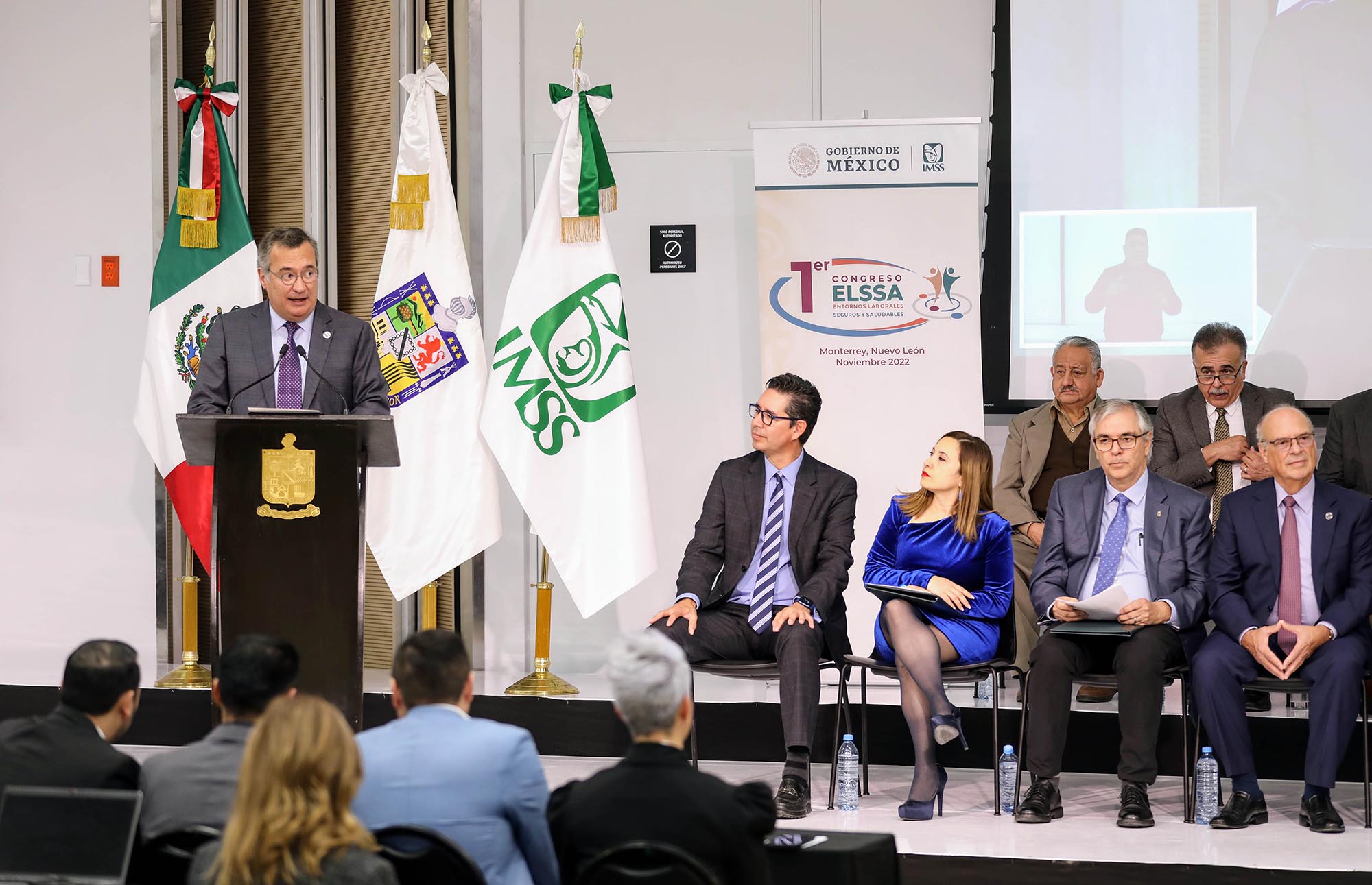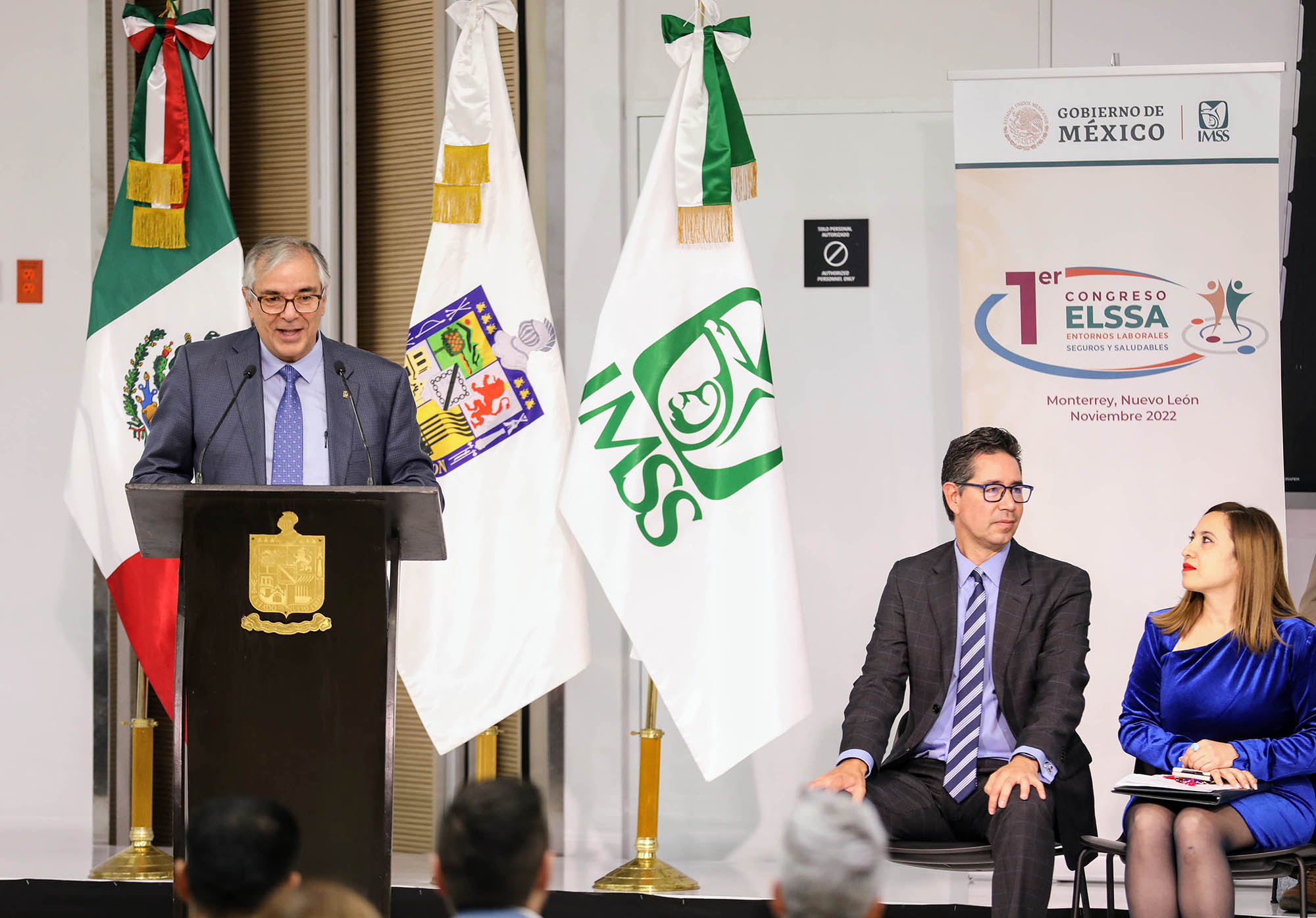 Acompañado de autoridades federales, estatales, municipales, líderes empresariales y sindicales, el titular del Seguro Social inauguró el Primer Congreso de Entornos Laborales Seguros y Saludables, que se lleva a cabo el 17 y 18 de noviembre en la Universidad de Monterrey, con la participación de ponentes nacionales e internacionales.
