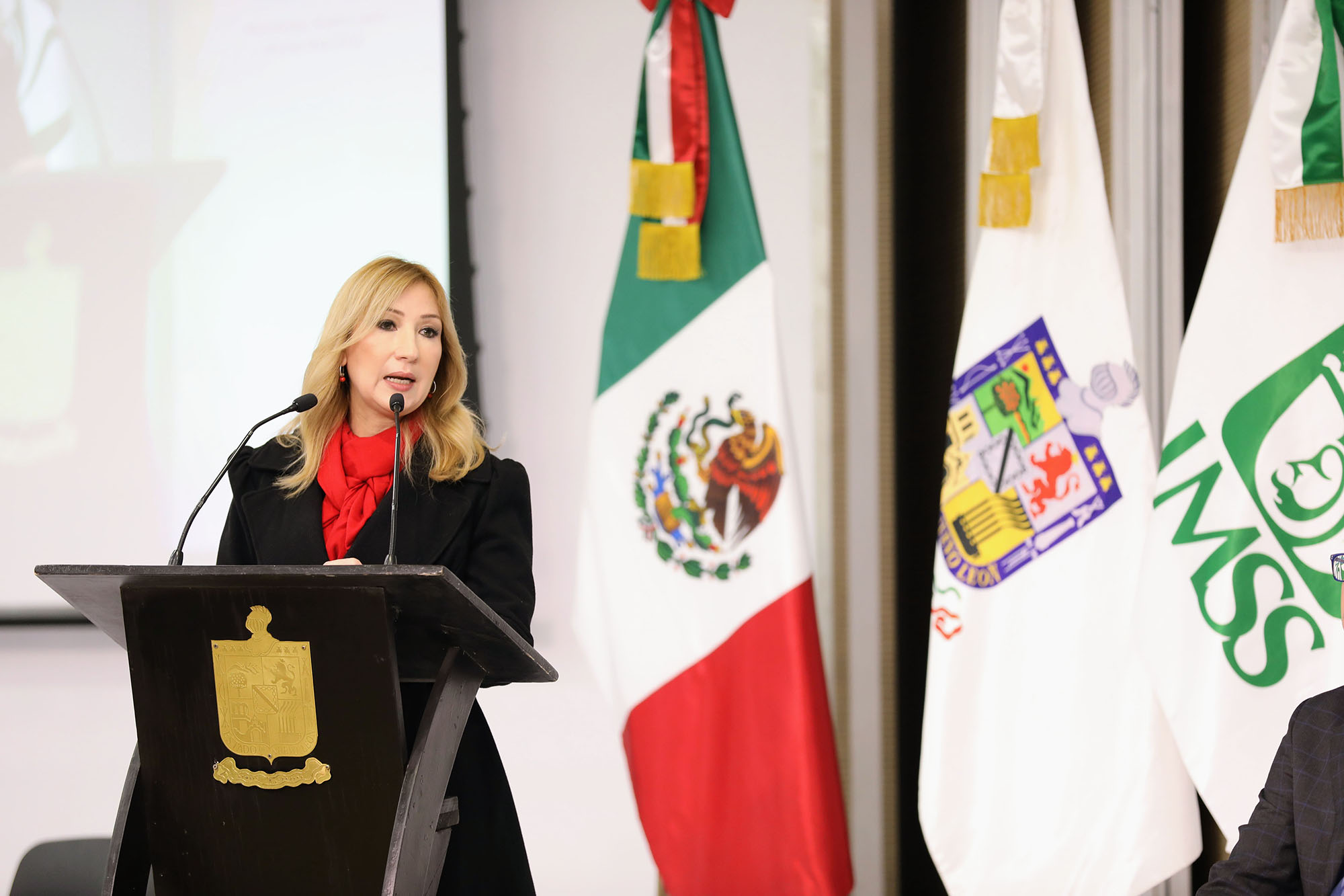 En su mensaje, la secretaria de Salud de Nuevo León, Alma Rosa Marroquín Escamilla, en representación del gobernador Samuel Alejandro García Sepúlveda, resaltó que esta entidad ha sido un gran ejemplo en identificar las necesidades de las personas, por ello, la actual administración ha conformado tres gabinetes que trabajan para garantizar mejores condiciones para todas y todos los regiomontanos.