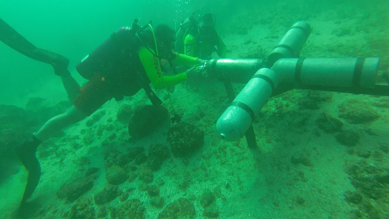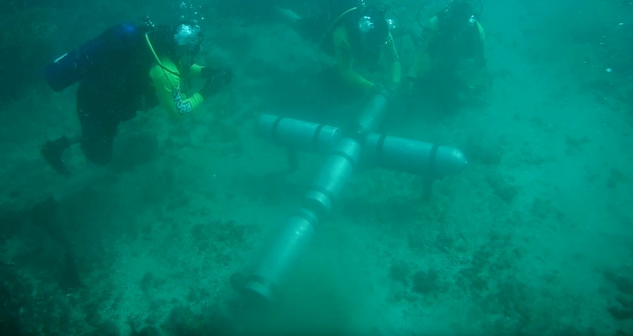 Finalmente, el homenaje a los oficiales culminó con la colocación de una cruz hecha a base de tanques de aire comprimido en el fondo de la zona de snorkel del parque marino, cuya finalidad es la de honrar la memoria de quienes hoy ya no están con nosotros.