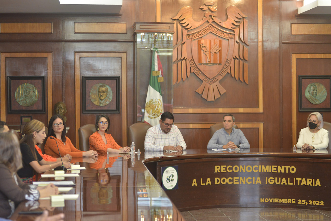En ceremonia realizada el Día Internacional de la Eliminación de la Violencia contra la Mujer y la Niña (25 de noviembre), la Universidad de Colima, encabezada por el rector Christian Jorge Torres Ortiz Zermeño entregó el premio “Reconocimiento a la Docencia Igualitaria” a Ana Karina Robles Gómez del Nivel Superior y a Zhared Pérez Pérez, del Nivel Medio Superior, en la sala de juntas de rectoría.
