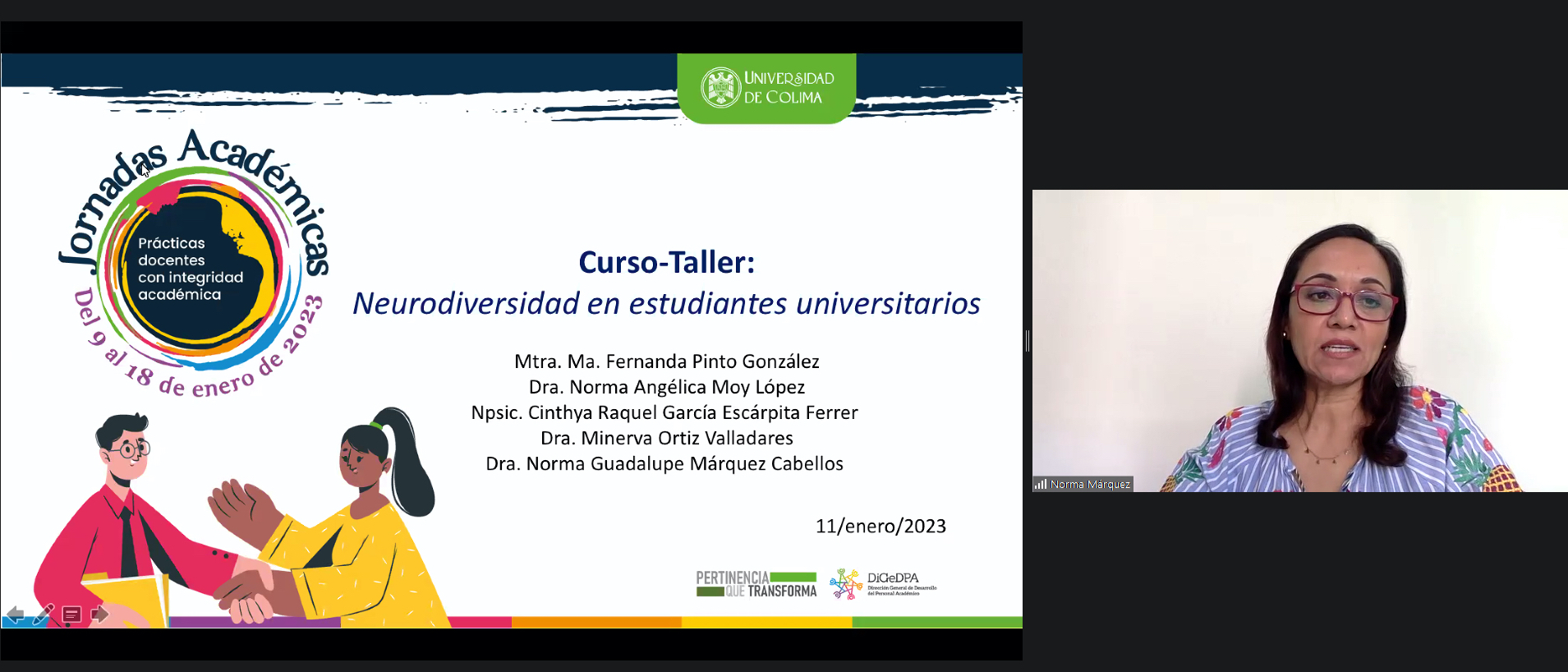 Como parte de las jornadas académicas de la Universidad de Colima, esta semana se está realizando el curso-taller virtual: “Neurodiversidad en estudiantes universitarios”, al que asistieron más de cien directivos, asesores pedagógicos y coordinadores académicos del nivel superior de esta casa de estudios.