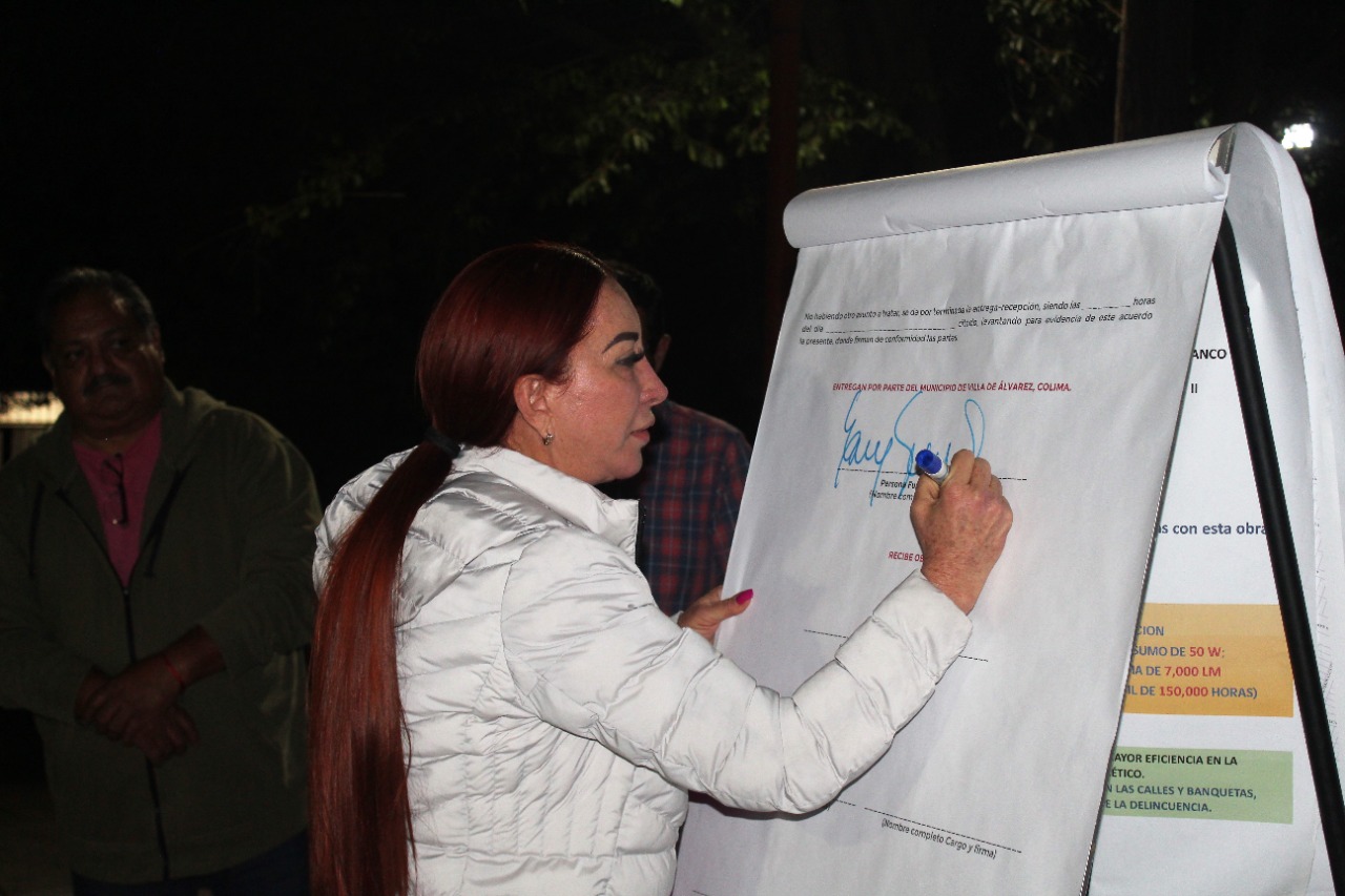 Continuando con su compromiso de brindar entornos seguros a las y los ciudadanos del municipio de Villa de Álvarez, con calles iluminadas y seguras, la Presidenta Municipal, Tey Gutiérrez Andrade, acompañada de funcionarias y funcionarios de su Administración, entregó la rehabilitación y modernización del alumbrado público a vecinas y vecinos de las colonias Buenavista y Ramón Serrano.