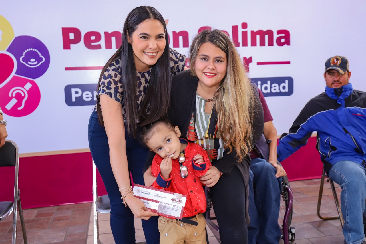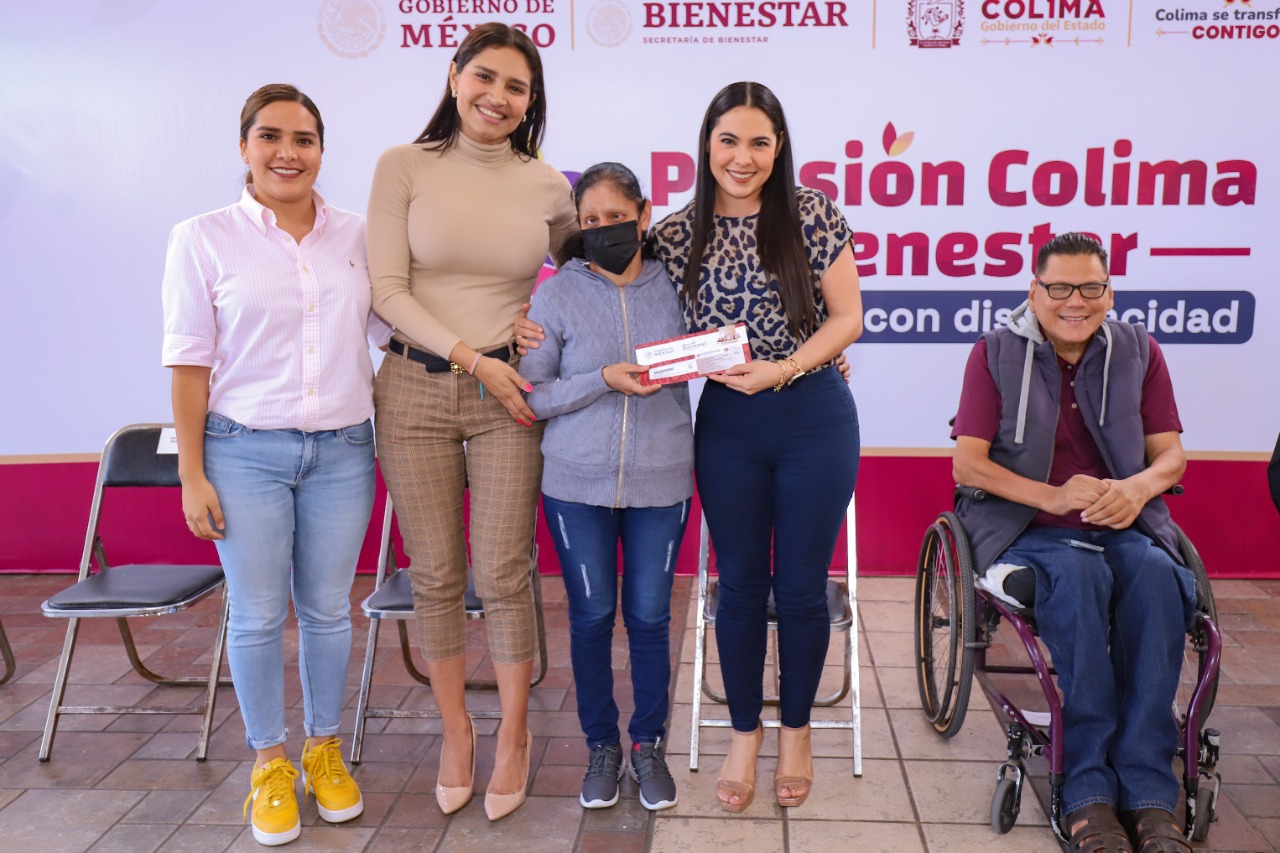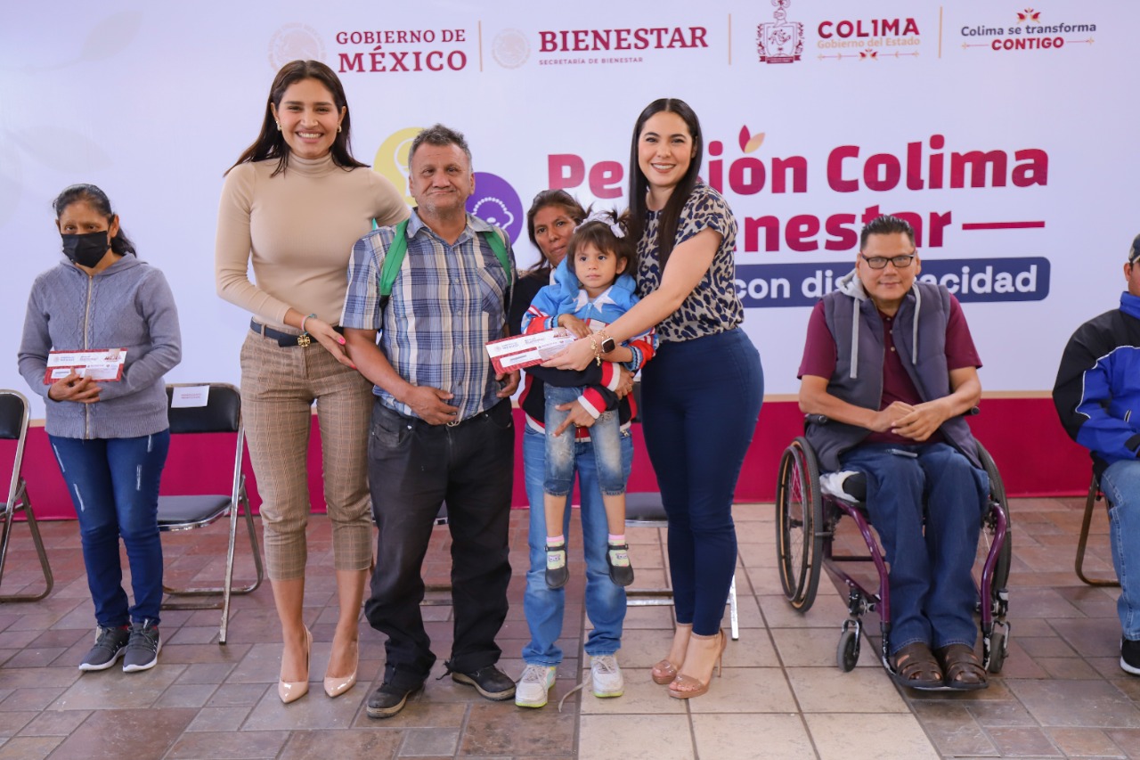 La gobernadora de Colima, Indira Vizcaíno Silva, y la delegada de Programas para el Bienestar, Viridiana Valencia Vargas, entregaron este jueves 172 tarjetas de la Pensión Colima Bienestar para Personas con Discapacidad de los diez municipios, donde el gobierno estatal y el federal destinan 40 millones de pesos anuales para que este beneficio sea universal; es decir, para quienes tengan de 0 a 64 años de edad.