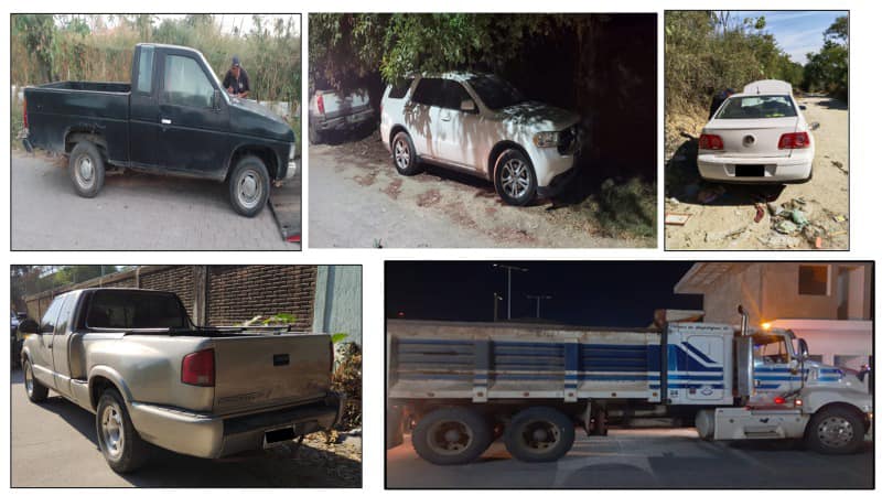 En coordinación con elementos de la Secretaría de Marina, con quienes se realizan constantes patrullajes por la ciudad y comunidades para la seguridad de las y los manzanillenses y además proteger su patrimonio, se han logrado asegurar diversas unidades que habían sido reportadas como robadas, en ese recuento se encuentran 2 camionetas pickup, 2 camionetas SUV, 1 auto sedan, 1 vehículo de carga, 8 motocicletas y 1 mototaxi. Estas unidades fueron puestas a disposición de la Fiscalía General del Estado de Colima.