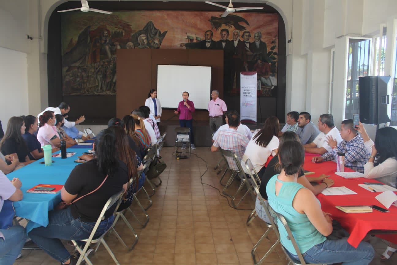 Durante la capacitación al Comité Municipal de Salud que integran funcionarios y funcionarias del municipio, realizada por un equipo de especialistas liderados por Aidé Espinoza, Jefa de la Jurisdicción Sanitaria No.1 de la Secretaria de Salud del Gobierno del Estado, se abordaron temas de salud pública prioritarios a atender, con la finalidad de mejorar los conocimientos, habilidades y aptitudes del personal del Ayuntamiento para el correcto cumplimiento de sus funciones en esa materia.