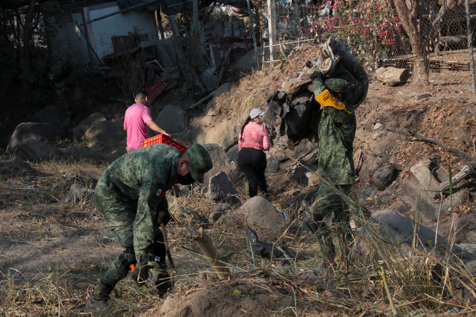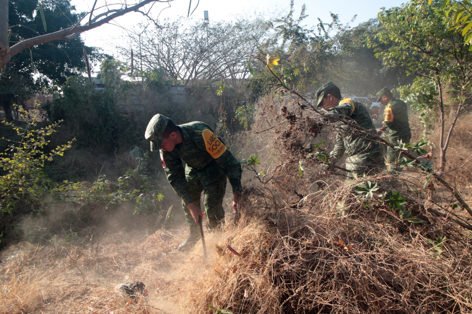 La limpieza y rescate de esa zona de la Ciudad de Villa de Álvarez se realizó con el apoyo de 92 trabajadores y trabajadoras del municipio, 62 efectivos del Ejército Mexicano, 25 del Gobierno del Estado y 15 vecinas y vecinos del lugar.
