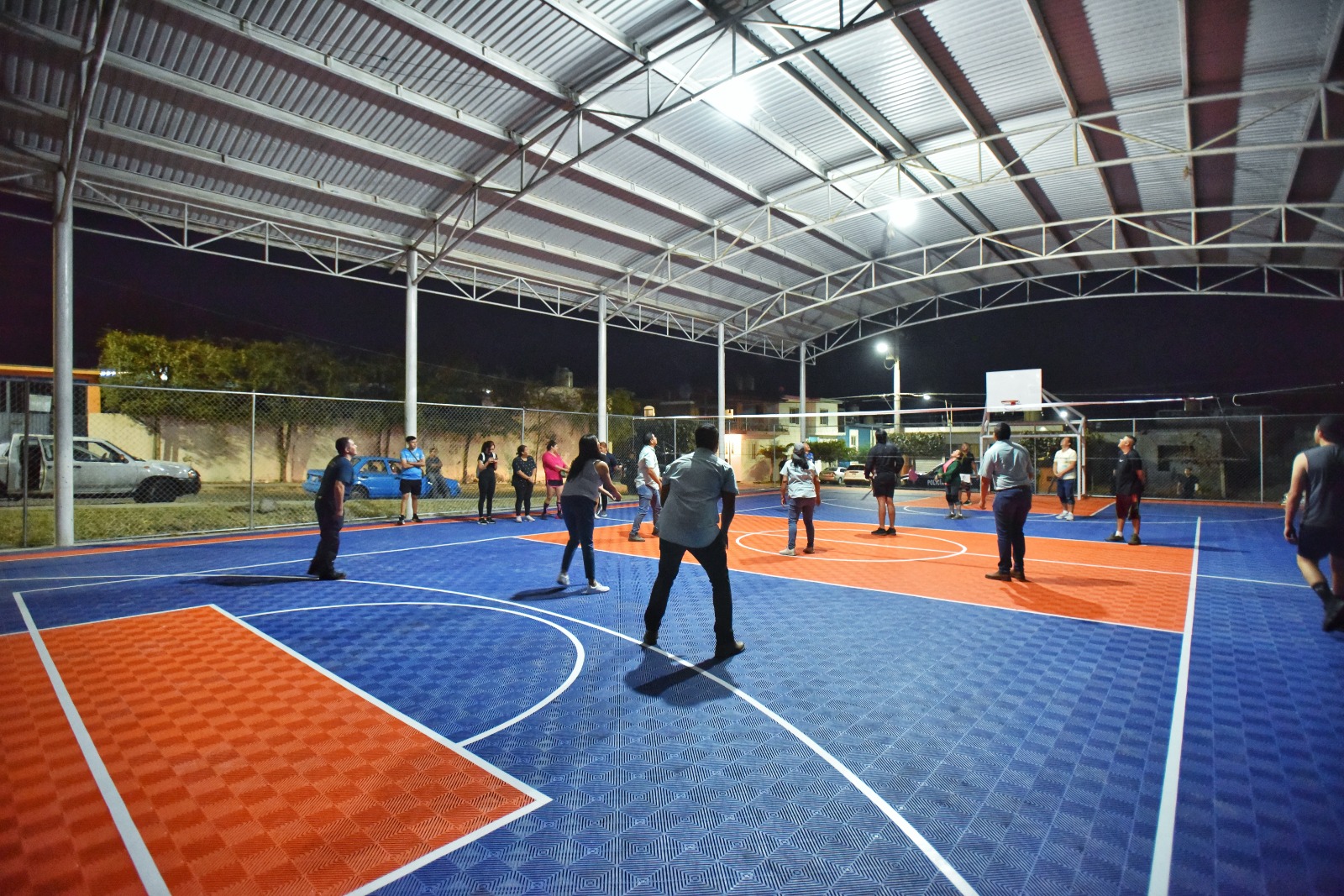 Los espacios se cubrieron con módulos de polipropileno con pigmentación orgánica y se colocó nueva malla ciclónica, además de rehabilitar la pintura en algunas áreas, como parte del programa de recuperación de espacios públicos e impulso al deporte, con una inversión superior al millón 350 mil pesos.