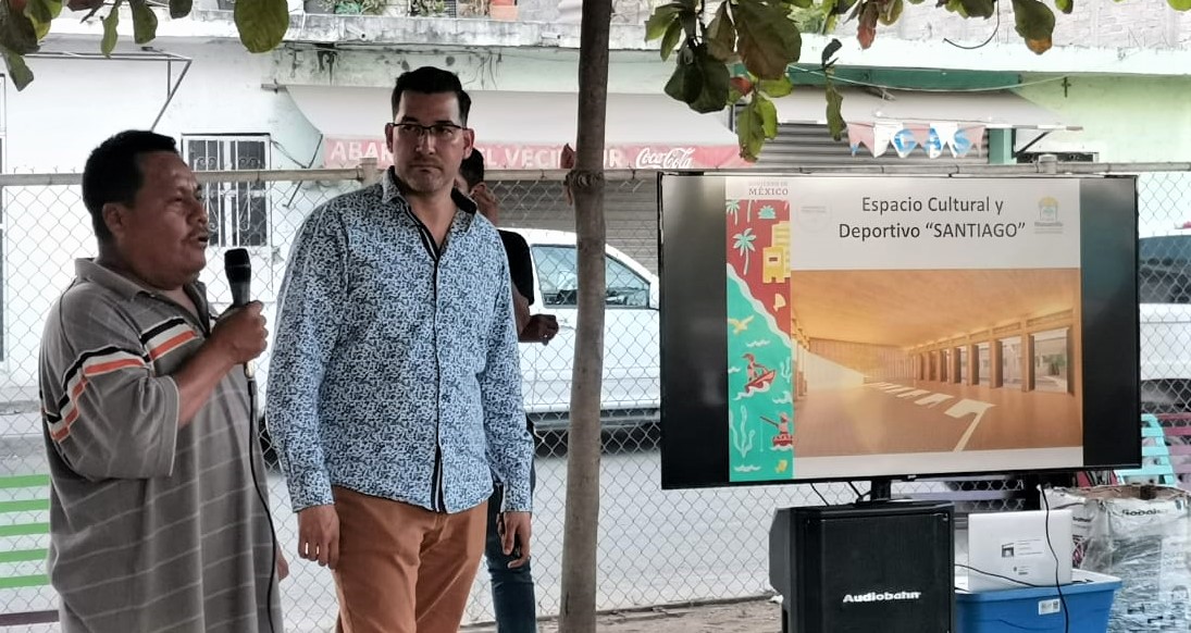 La primera de las reuniones se llevó a cabo en la cancha de usos múltiples de Barrio Nuevo en la localidad de Santiago, ahí en una presentación visual, se mostró un render de cómo va quedar la nueva edificación, en donde habrá canchas deportivas, salones y espacios para diversas clases, ya sea de arte o de otras disciplinas. En este proyecto el Ayuntamiento de Manzanillo hará como obra complementaria la repavimentación de la calle que llevará a esta nueva obra. Estas consideraciones, fueron bien aceptas por las y los vecinos que acudieron a esa reunión, en donde se les pidió avalar el proyecto firmando un documento, con lo cual, la SEDATU cumple con los requisitos para la intervención que se hará.