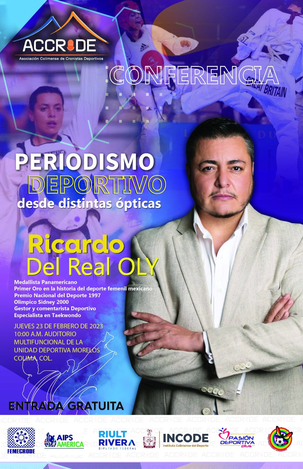 El Instituto Colimense del Deporte (Incode) y la Asociación Colimense de Cronistas Deportivos (Accrode) anunciaron la ponencia “El periodismo deportivo desde distintas ópticas”, que brindará el ex deportista Ricardo del Real ‘Oly’ en el marco del Día Nacional del Cronista Deportivo, el próximo jueves 23 de febrero en el auditorio Multifuncional de la Unidad Deportiva Morelos.