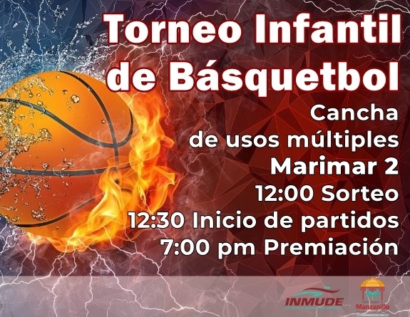 Respecto al Torneo infantil de Basquetbol en Marimar 2, éste iniciará en la cancha de usos múltiples; a las 12 de día se llevará a cabo el sorteo entre equipos, a las 12:30 se dará el primer encuentro y a las 7 de la tarde se hará la premiación correspondiente donde se entregarán medallas.