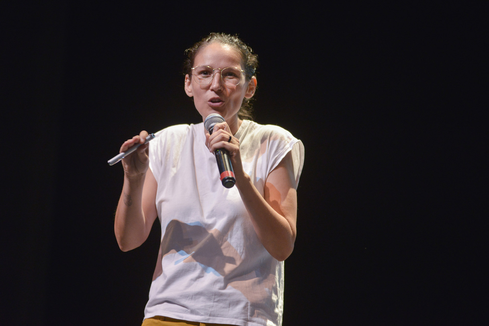 La conferencia se realizó en el Teatro Universitario “Coronel Pedro Torres Ortiz”, ante un auditorio compuesto por estudiantes, docentes y autoridades y funcionarios de la Universidad. Allí, Angélica Jiménez invitó a consumir menos de todo lo que usamos diariamente, como primera acción antes incluso de pensar en reciclar; “con esto se empiezan a cambiar patrones y podemos ver grandes focos donde sí se encuentran las problemáticas”.