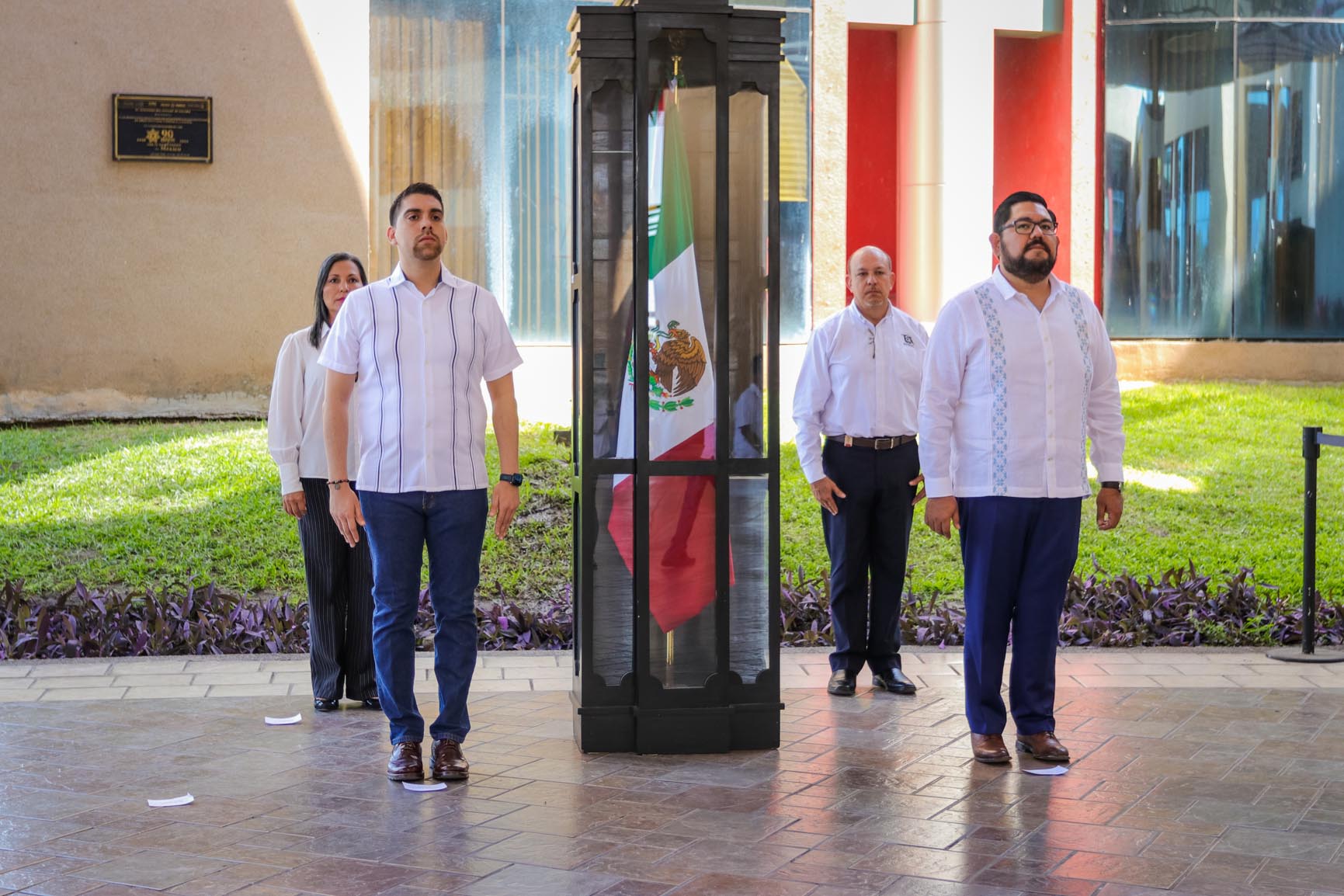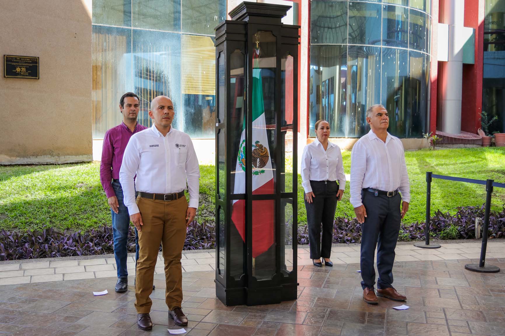 La mañana de este viernes, funcionarios de primer nivel de la Universidad de Colima realizaron una guardia de honor a la bandera, en ceremonia organizada por el Gobierno del Estado en la explanada del Complejo Administrativo. También acudieron la presidenta y los presidentes de los sectores universitarios.